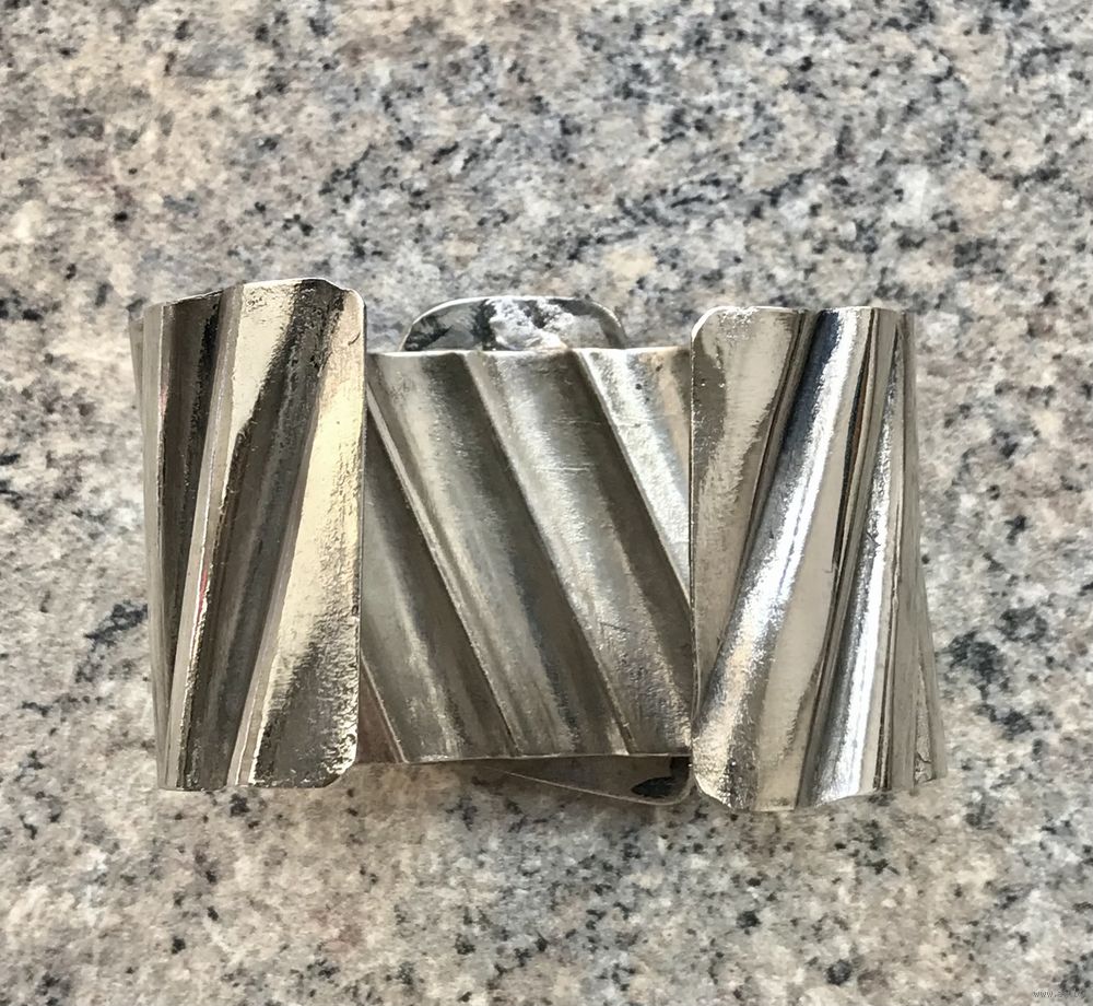 Крупный браслет с основой из металла с серебрением и вставкой из чёрного агата. Высота браслета 4,3см., размер вставки 5х2,5см. Подойдёт на широкое запястье. Ручная работа. Состояние хорошее.