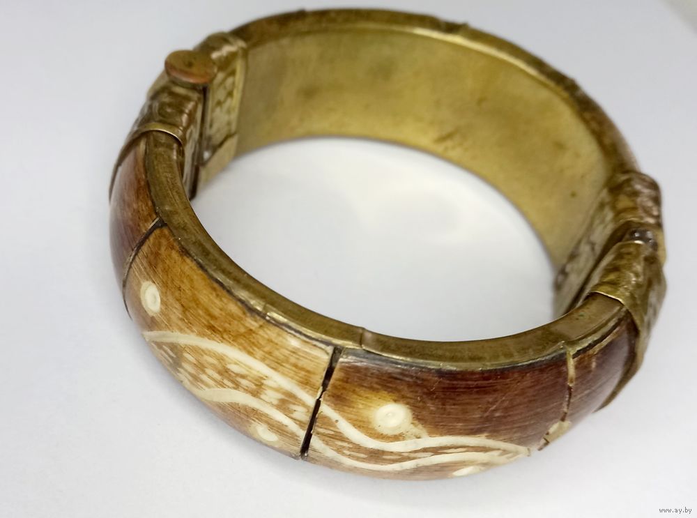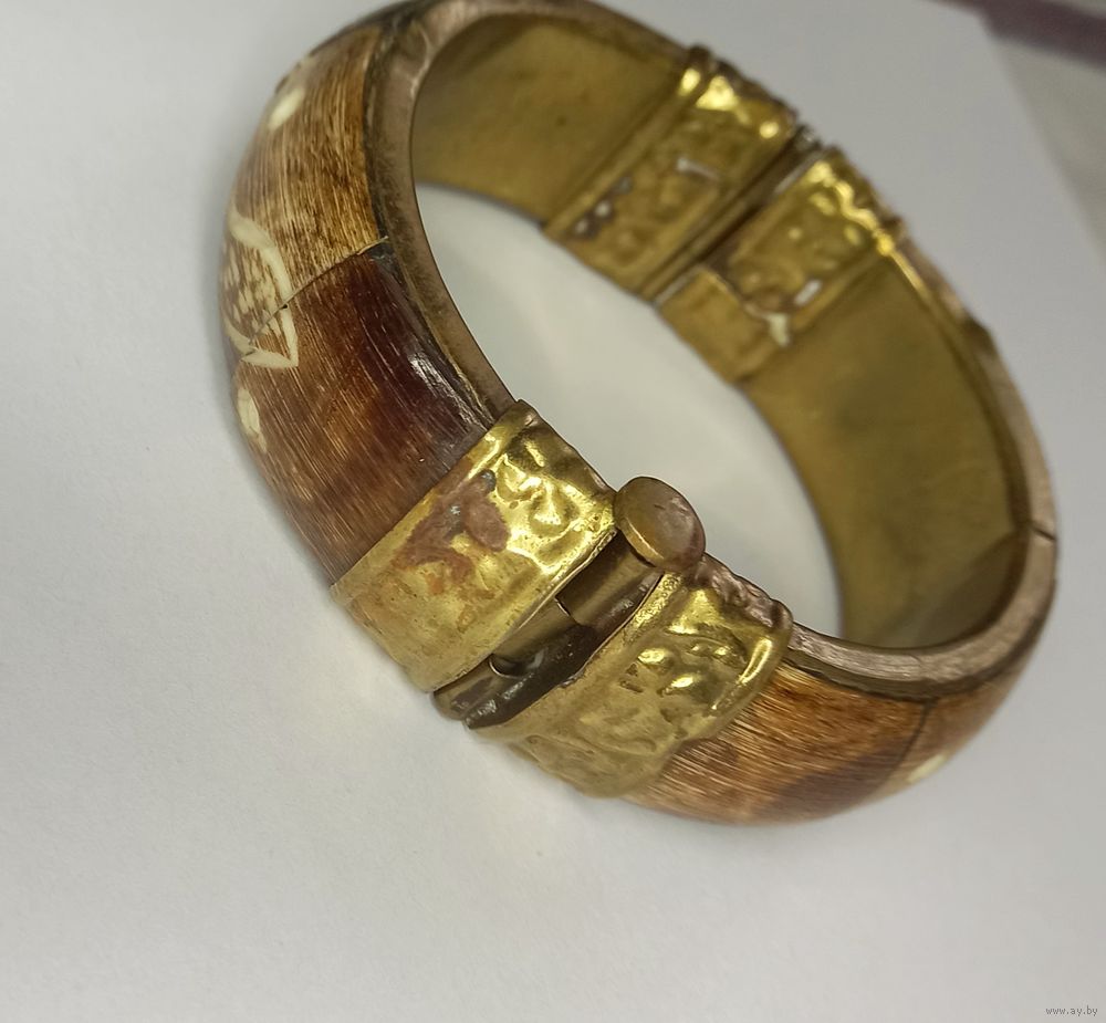 Восточный браслет, латунь, кость, шомпольная застежка. Максимально на запястье 19 см, ширина 2.5 см