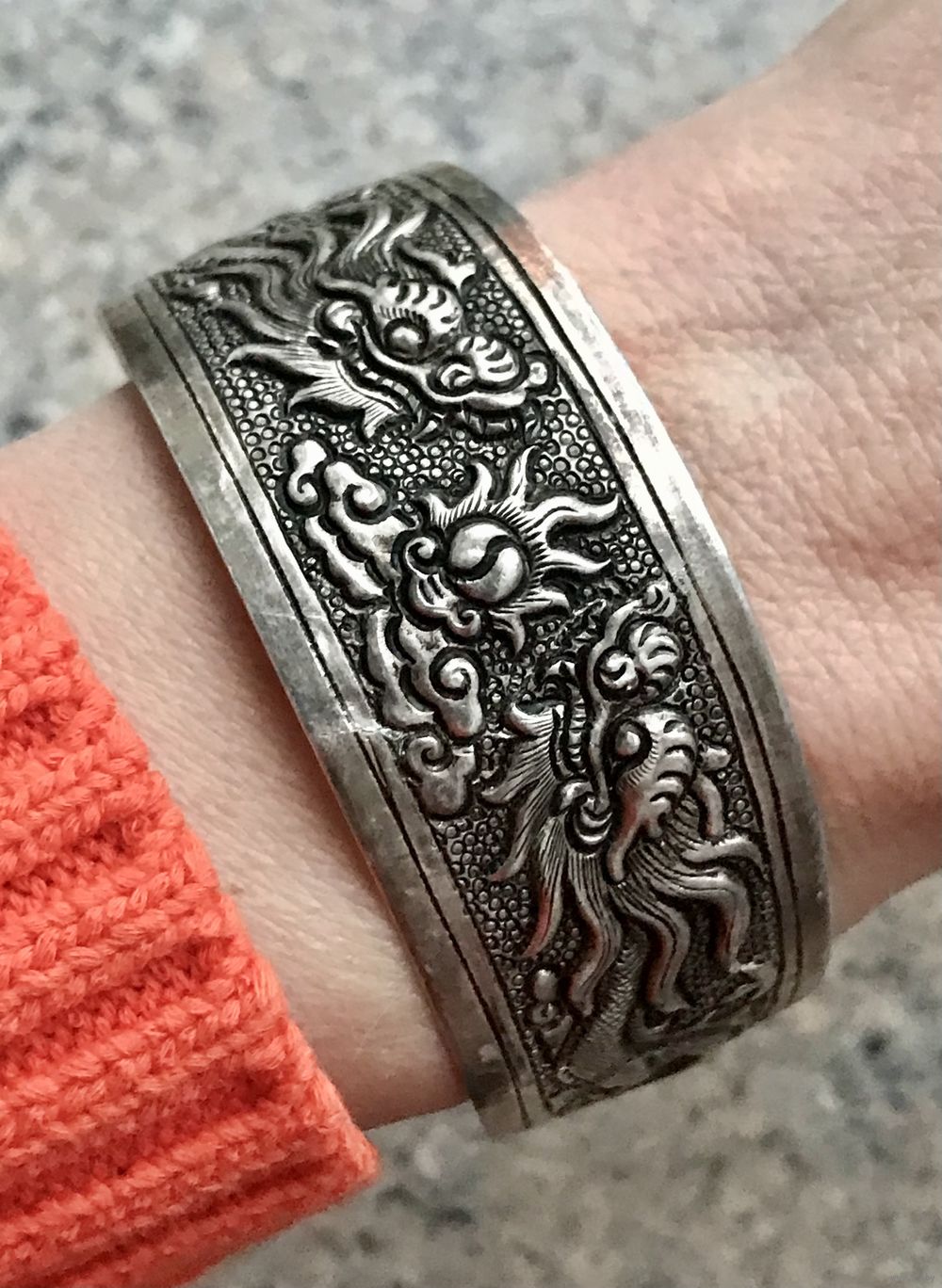 Винтажный браслет из серебра 999пр., высота центральной части 2,5см., вес 20гр., состояние хорошее.