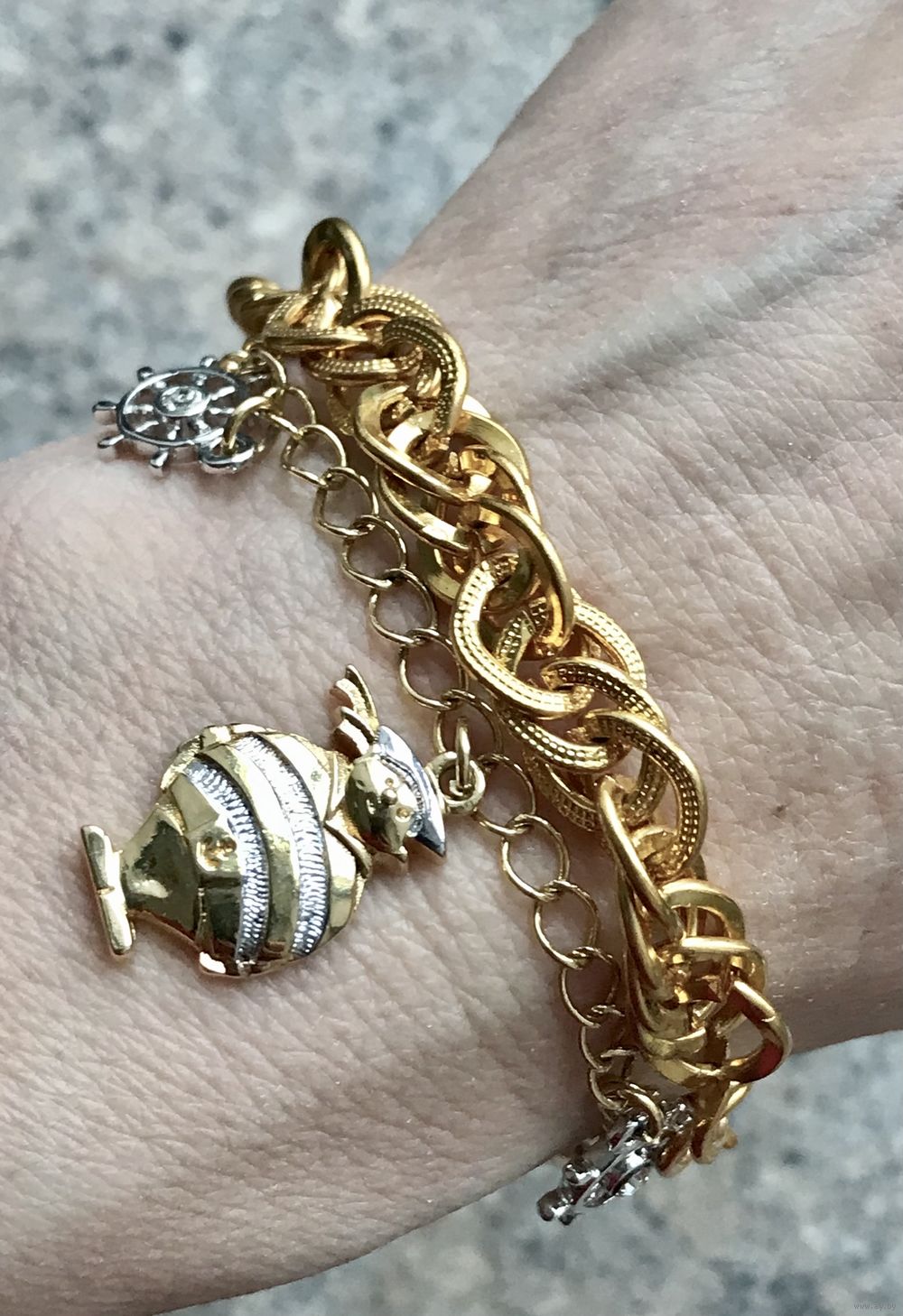 Лот из двух браслетов компаньонов, один из которых юв. бренда Женави. Длина максимальная браслета с шармами 23см., другого 19см. Состояние хорошее.