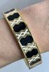 Эффектный браслет от американской компании Talbots. Компания была основана в 1947 году. Начиналась с маленького магазинчика и выросла в крупную сеть производящую качественную одежду и аксессуары. Существует по настоящее время. Браслет выполнен из металла золотого тона, лицевая сторона украшена эмалью. Высота 1,5см., вн.диаметр 6,2см., толщина 0,4см. Разъемный. Маркирован. Тяжёленький. Состояние хорошее.