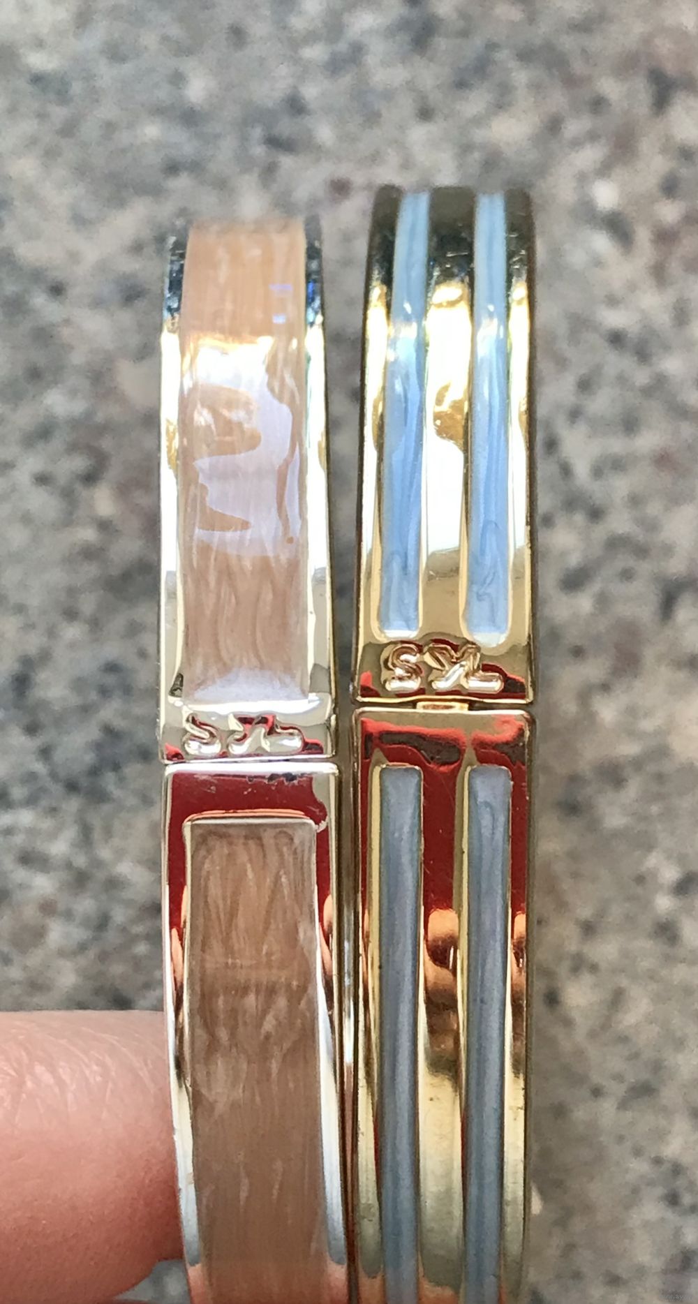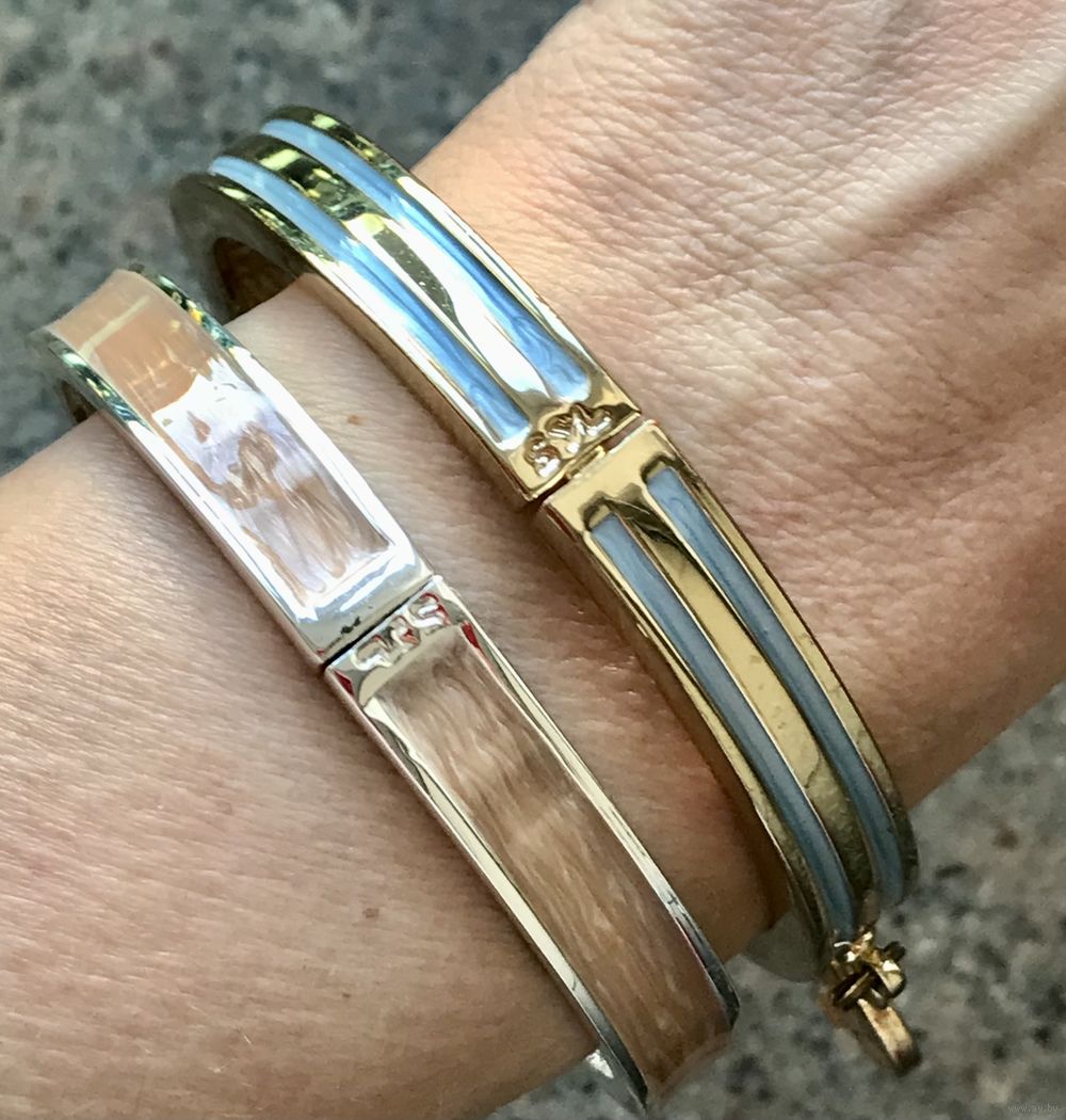 Лот из двух браслетов швейцарского бренда SYL (Sal y Limon). Основа - гипоаллергенный бижутерный сплав, на одном браслете серебрение, на другом -золочение, на лицевой стороне эмаль.