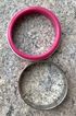 Браслеты, дополняющие друг друга. Браслет из пластика розового и белого цветов высотой 1,8см., диаметр 6,5см. Браслет с основой из металла и эмалью на лицевой стороне, высота 1,5см., диаметр 7см. Состояние хорошее.