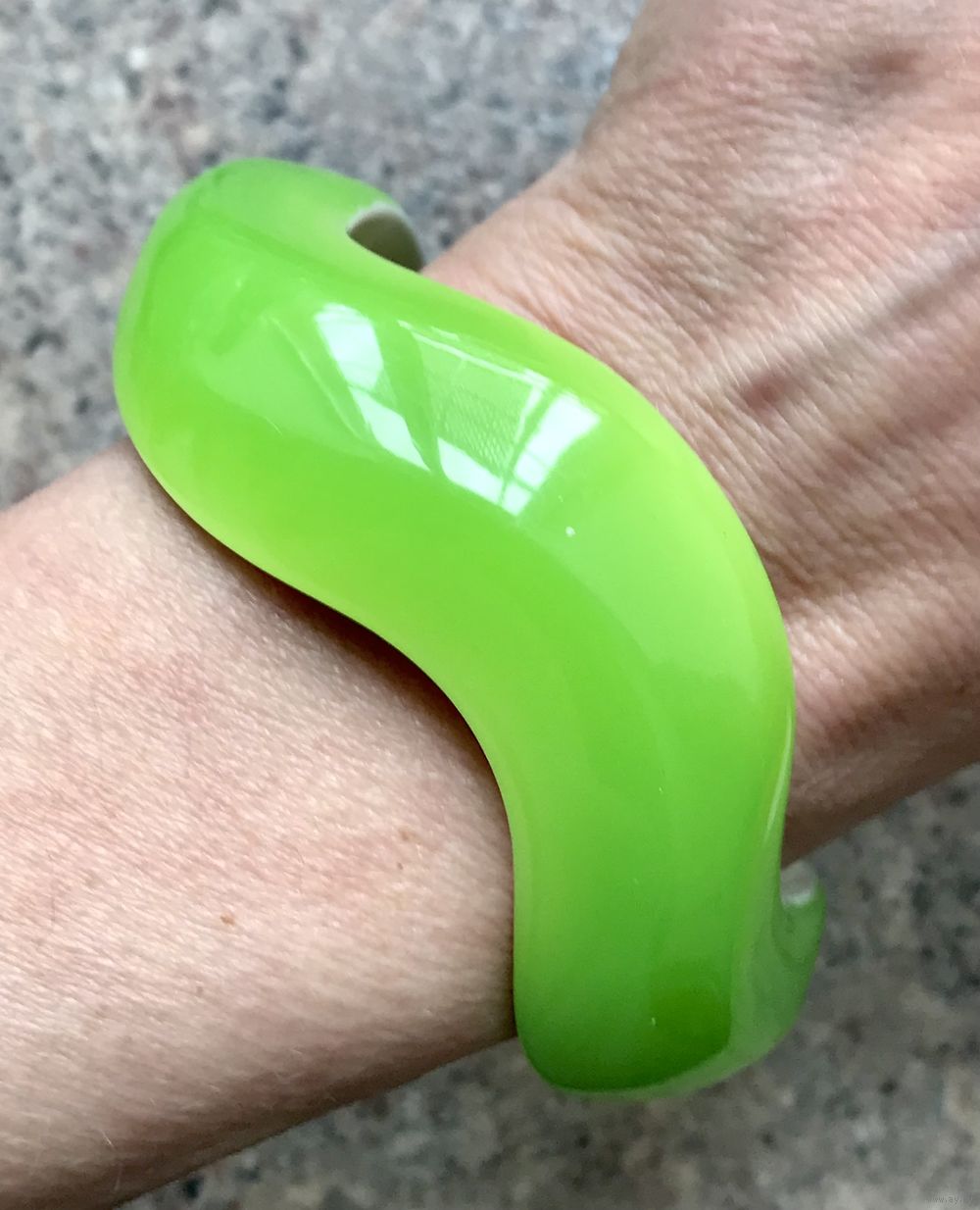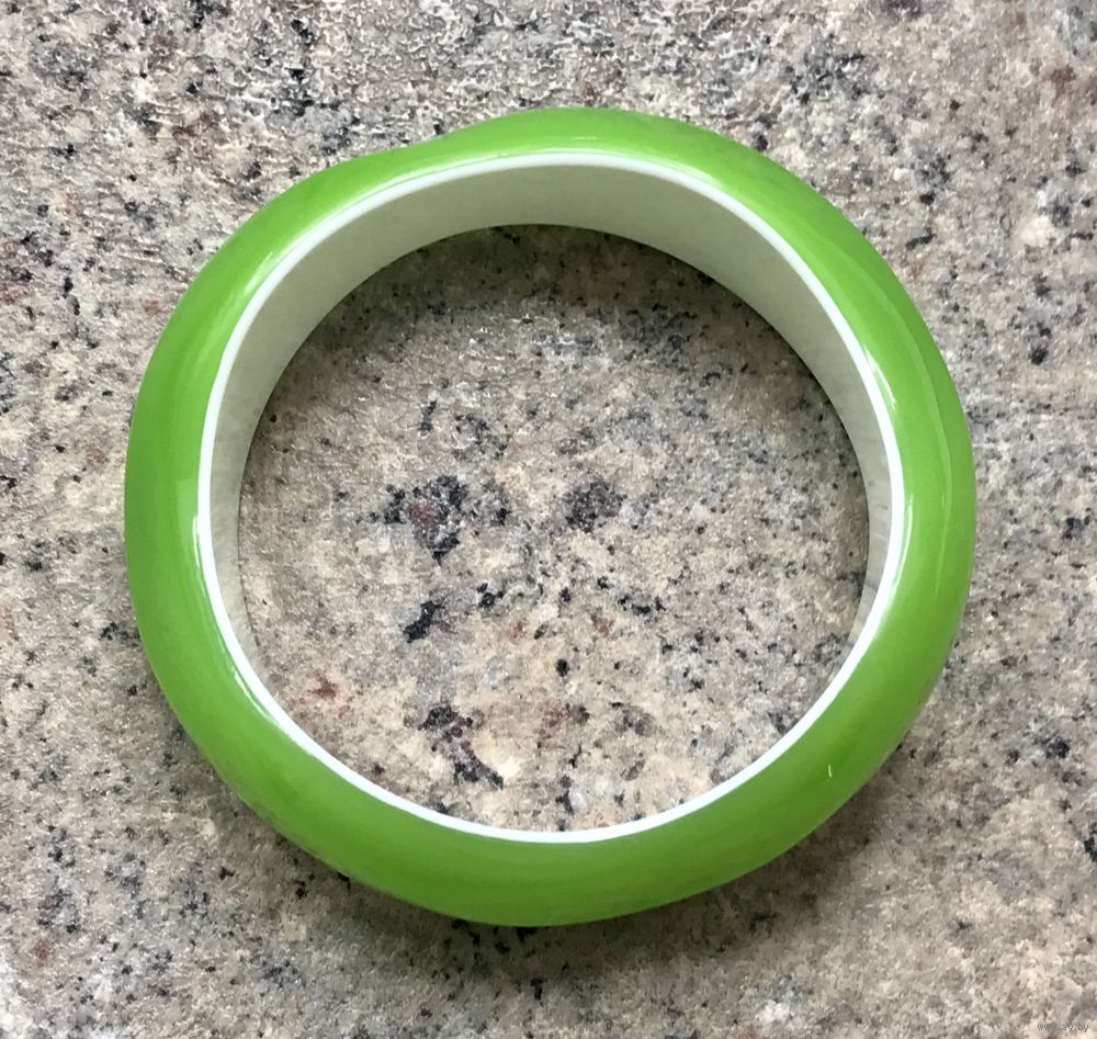 Браслет из плотного пластика. Высота от 1,5см. до 2см. Вн.диаметр 6см. Состояние хорошее.