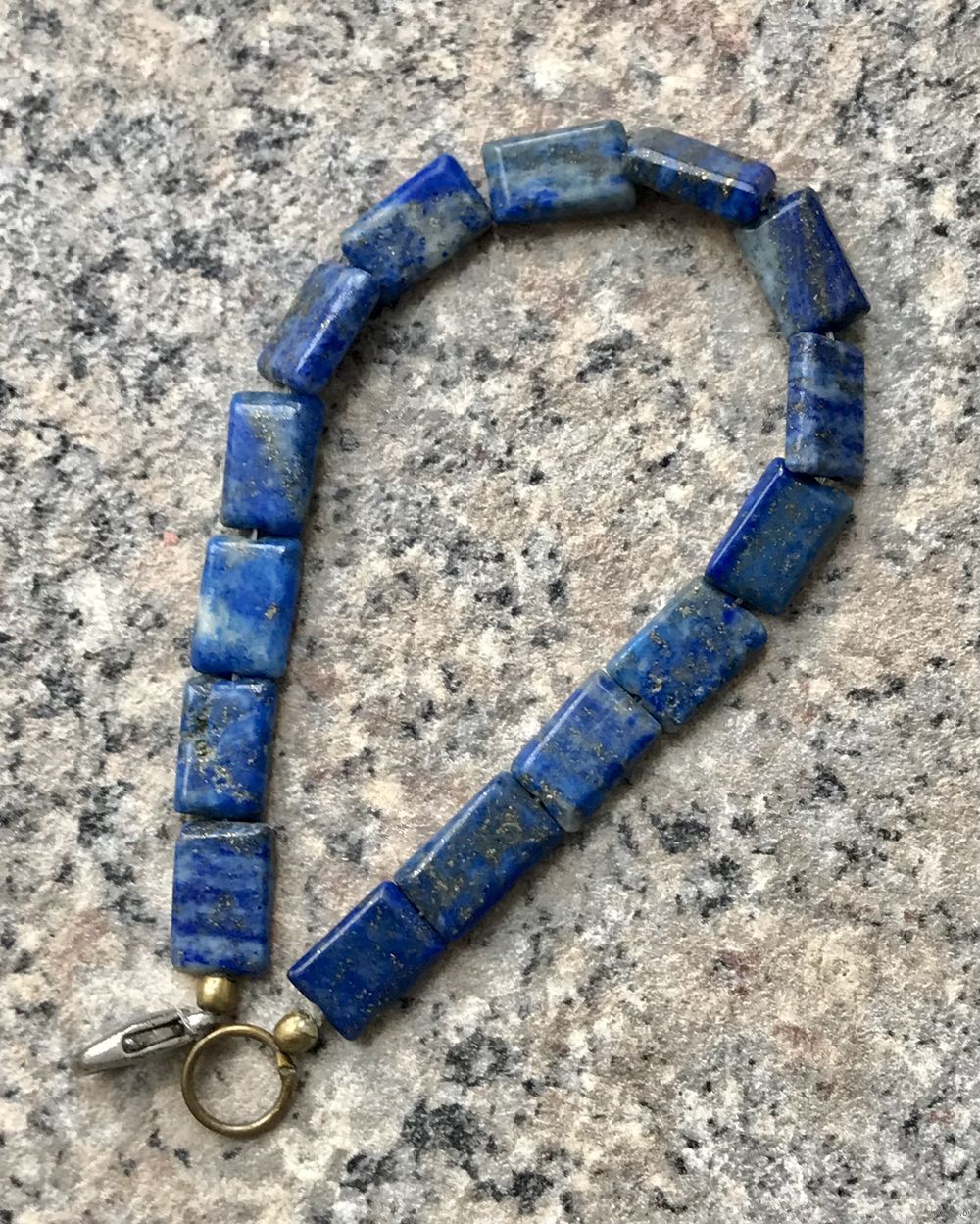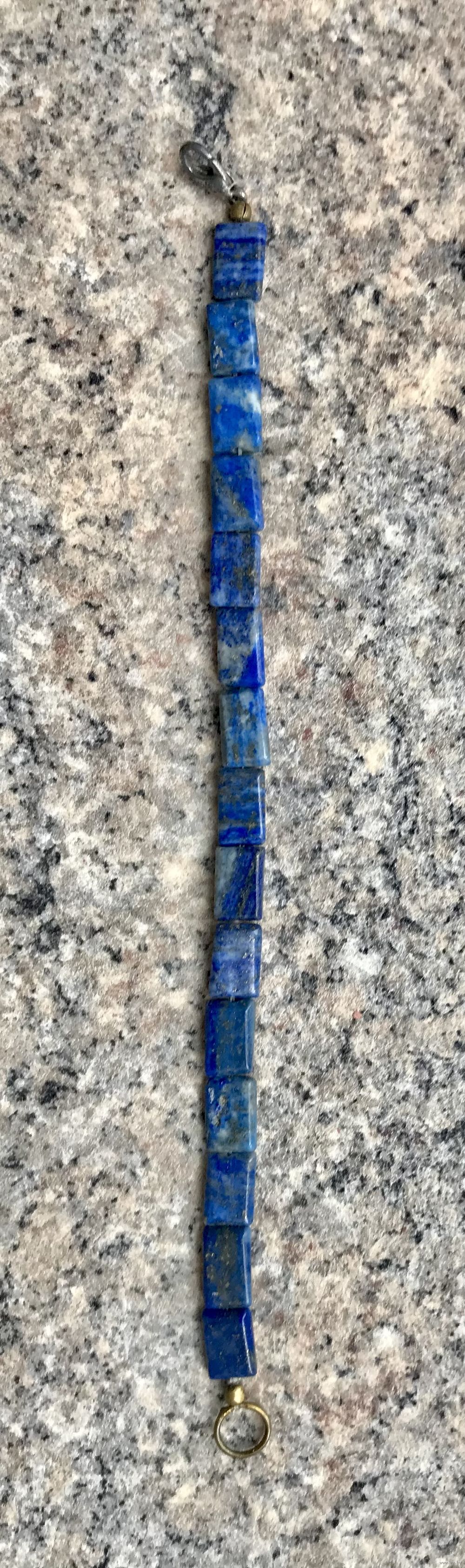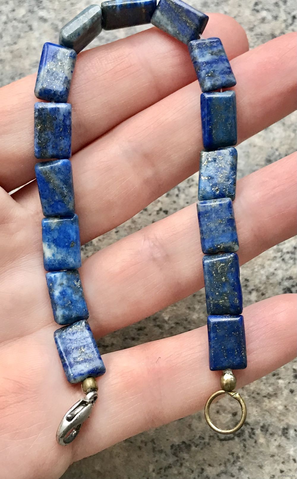 Браслет из лазурита, бусины нанизаны на леску, лучше перетянуть. Длина браслета 19см., размер бусин 1,1х0,6см.
