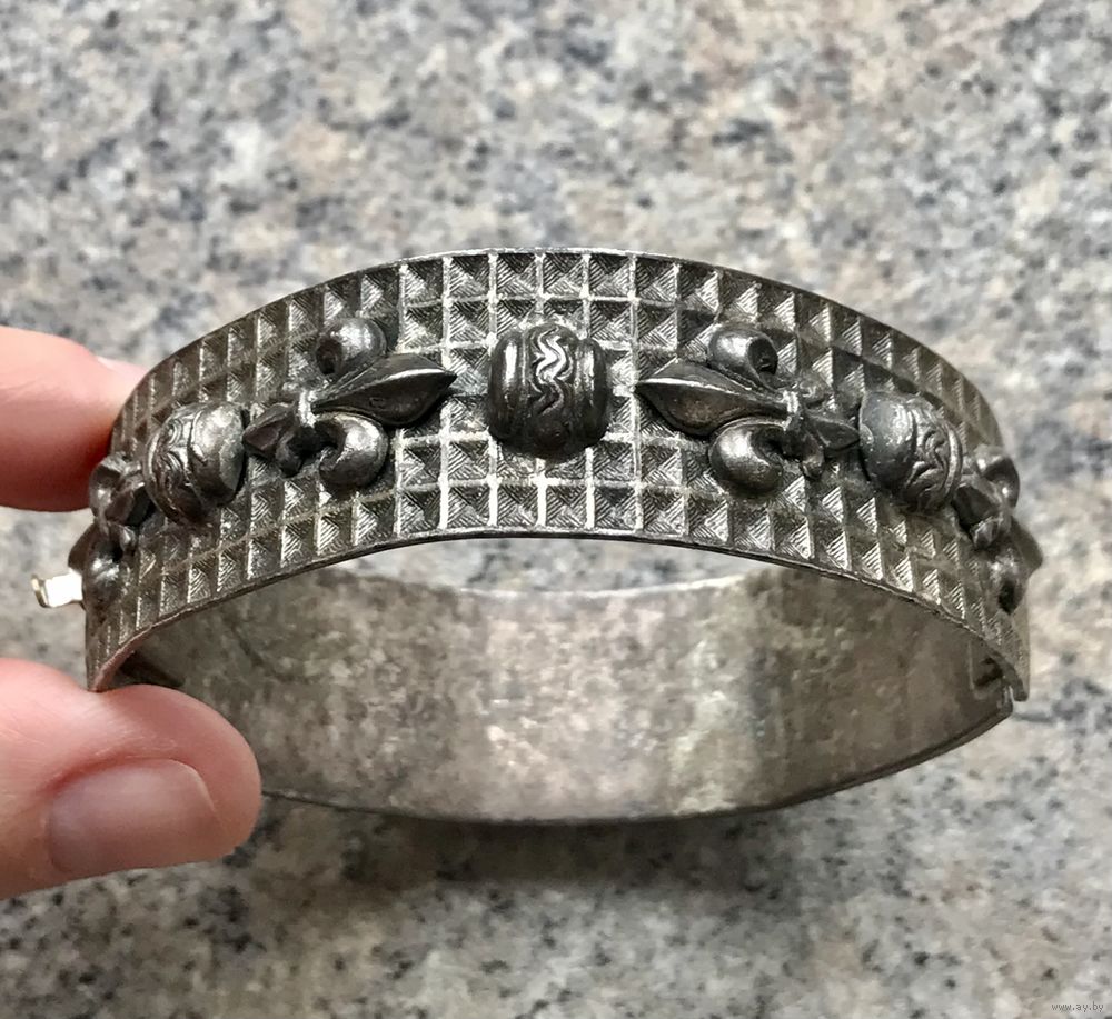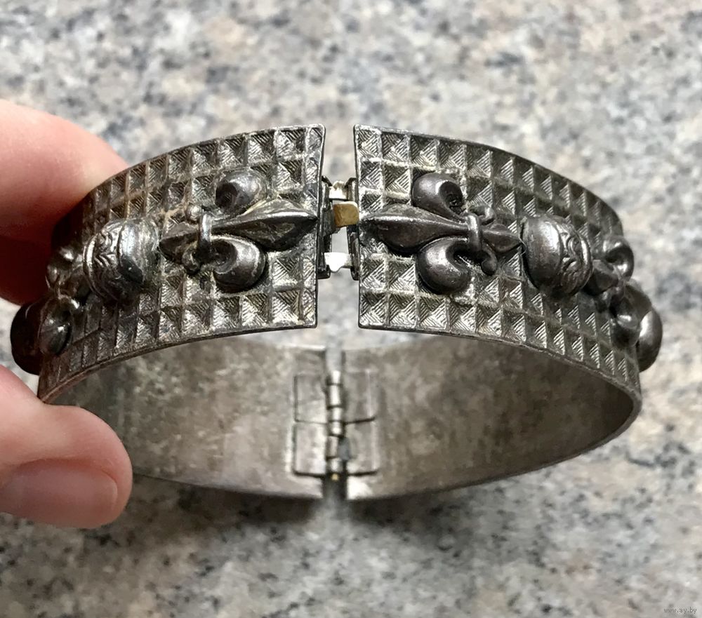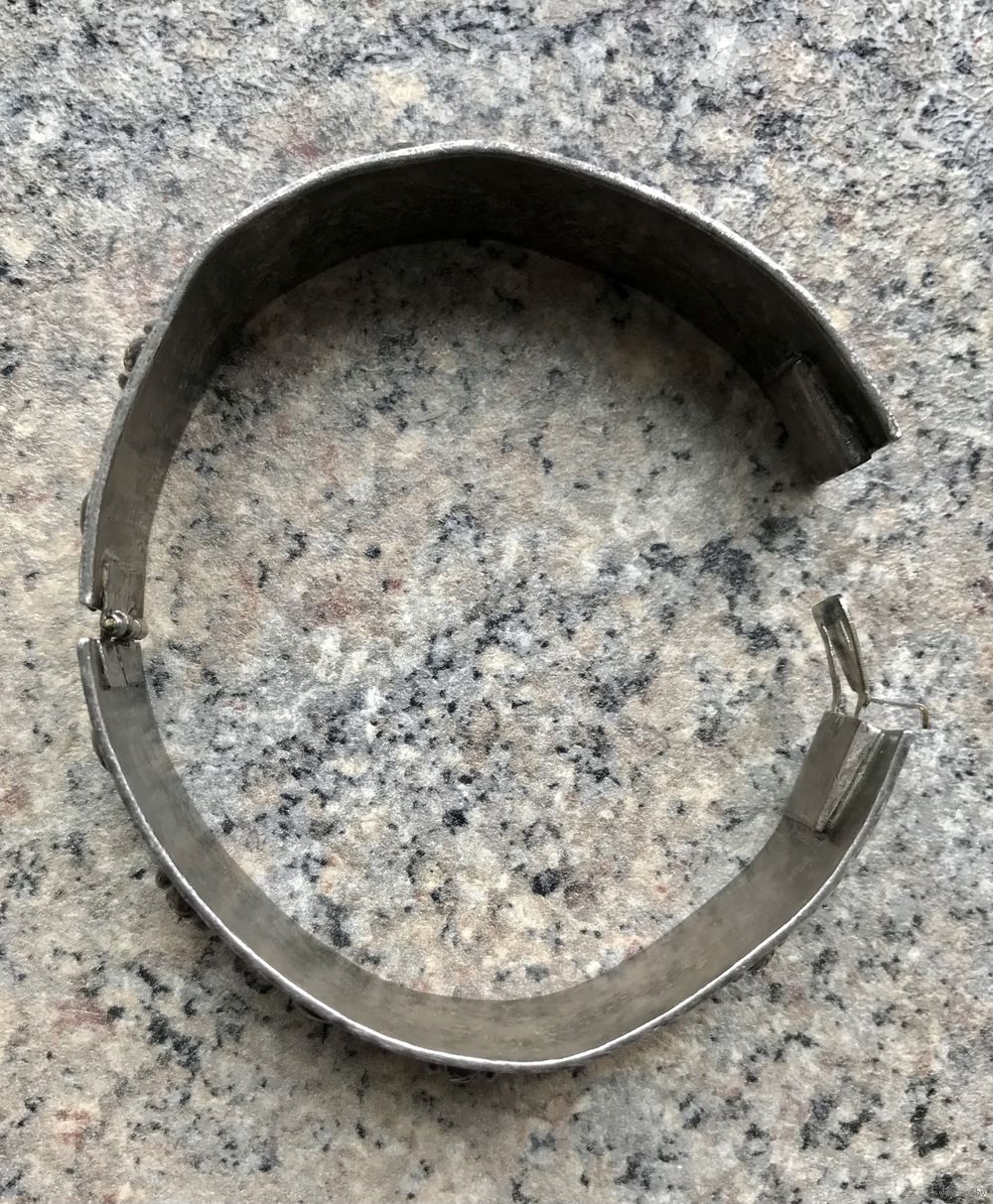 Браслет из латуни с серебрением, Чехословакия 1960-е гг. Высота 2см., вн. диаметр 6,5см. Состояние хорошее.