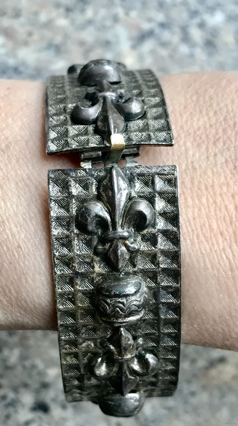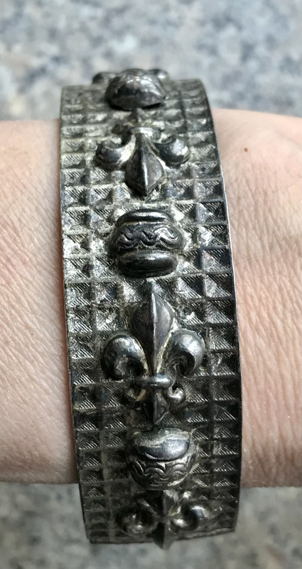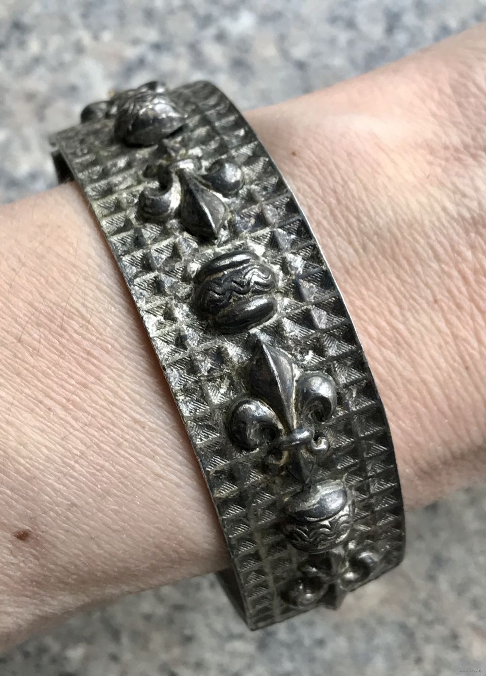 Браслет из латуни с серебрением, Чехословакия 1960-е гг. Высота 2см., вн. диаметр 6,5см. Состояние хорошее.