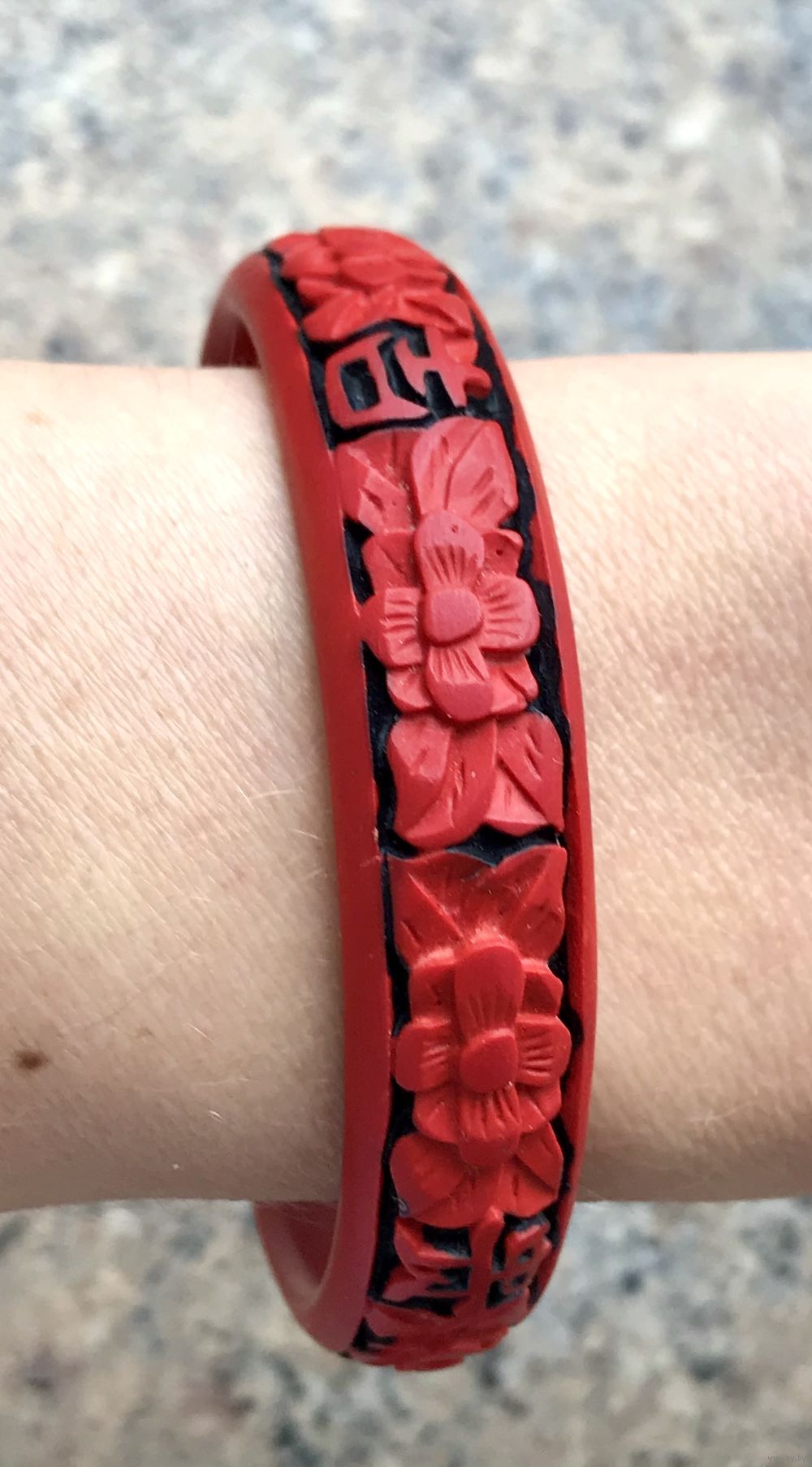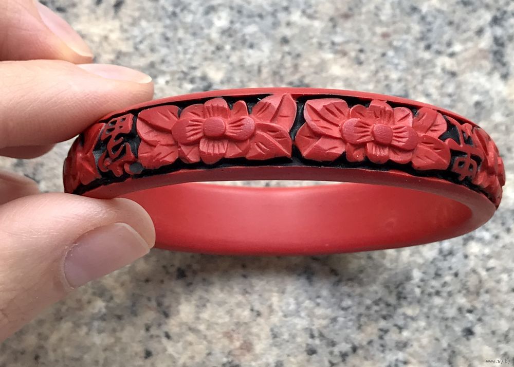 Винтажный китайский браслет, ручная резьба по пластику (не лак). Высота 1,2см., вн.диаметр 6см. Пройдёт через узкую кисть руки. Состояние хорошее.