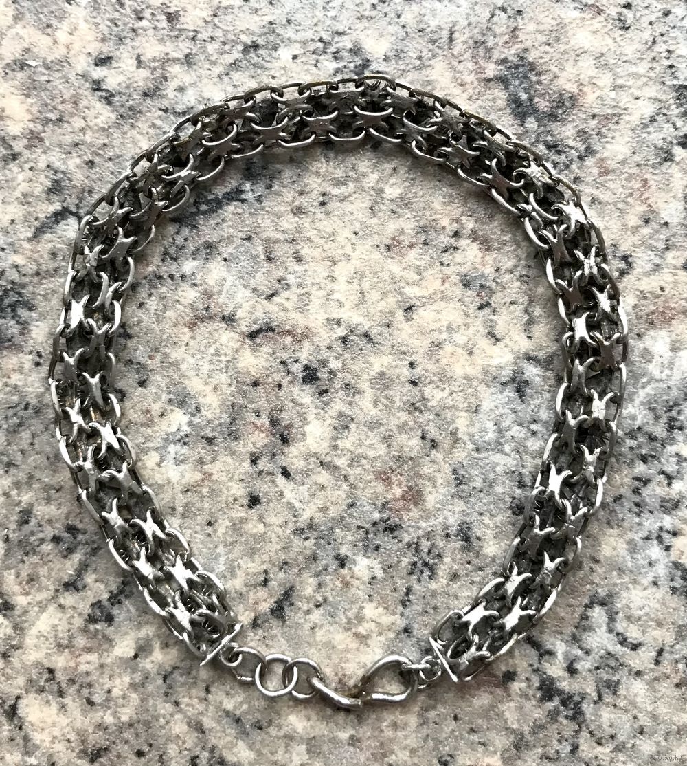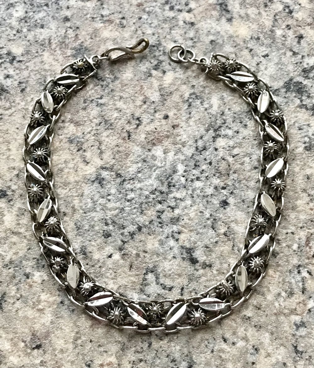Браслет из металла серебристого тона. Длина 20-21см.(с доп. колечками), высота 0,7см. На застёжке есть небольшая потертость металла.