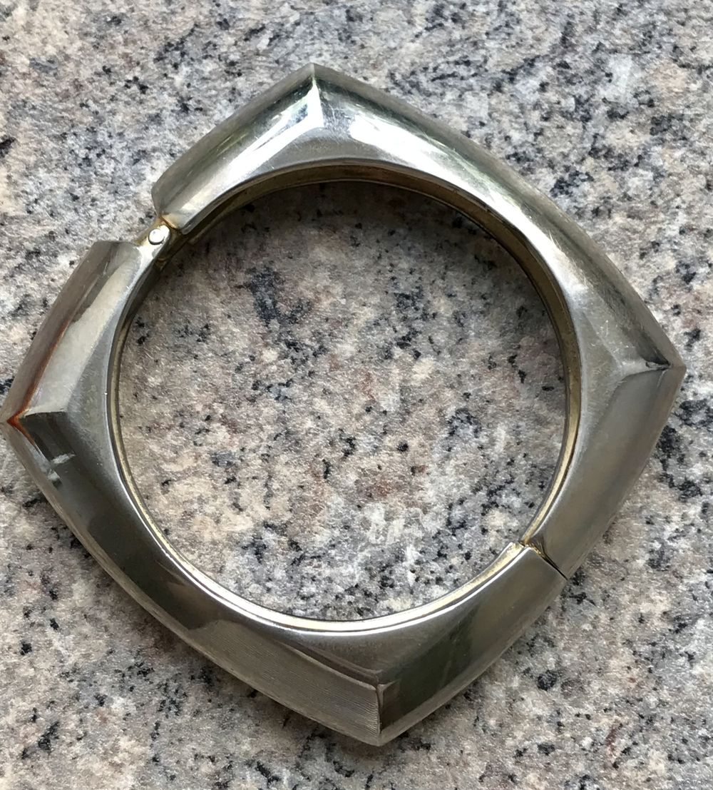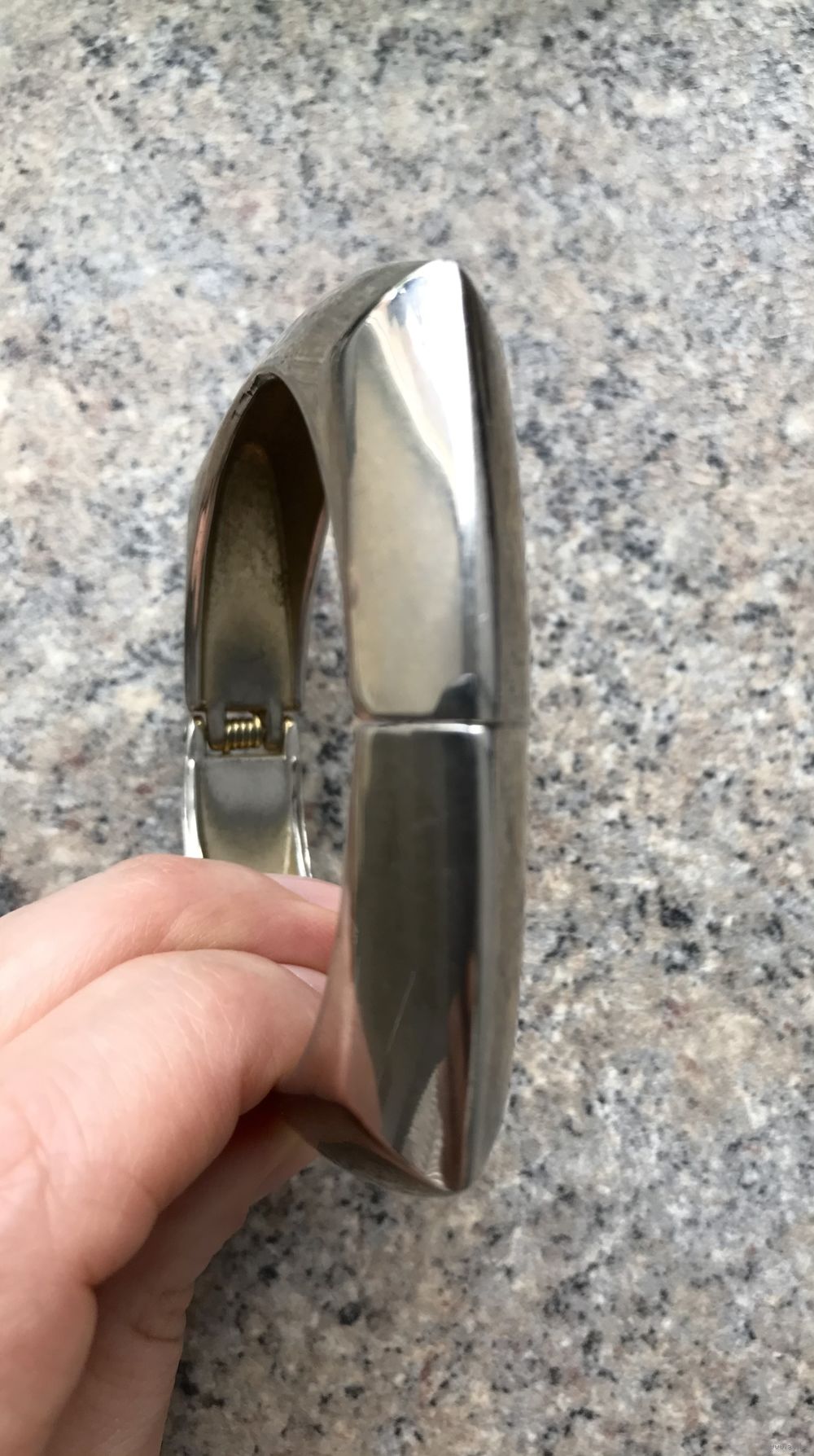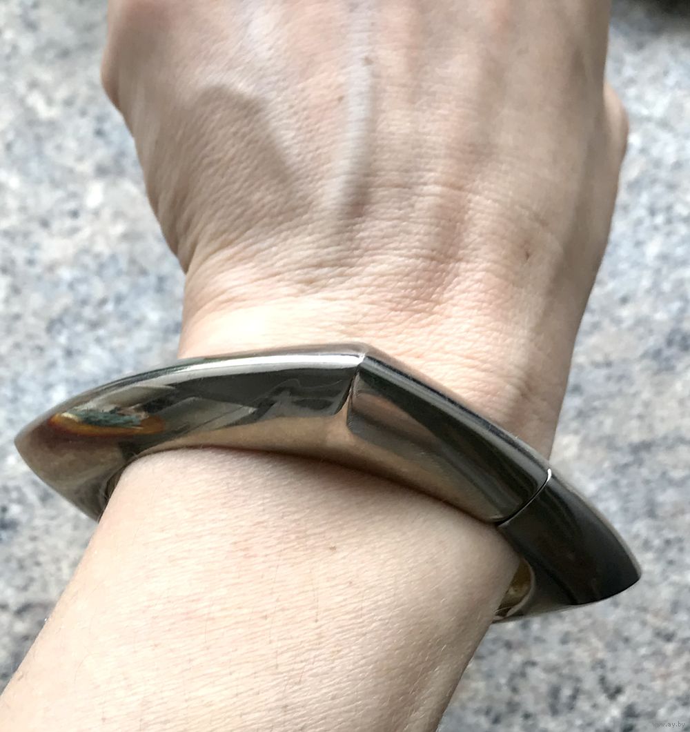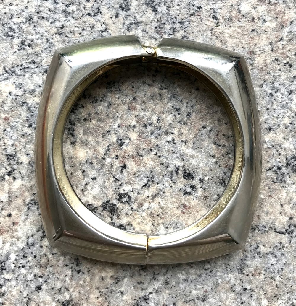 Браслет разъемный из металла серебристого тона с легким слоем позолоты. Вн. диаметр 6 см. Состояние хорошее.