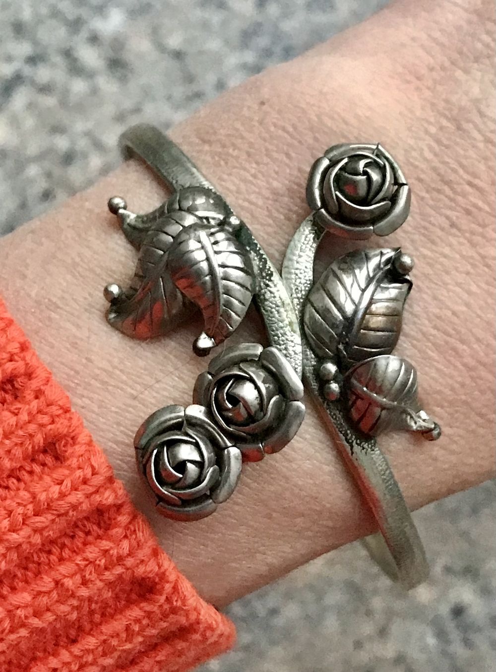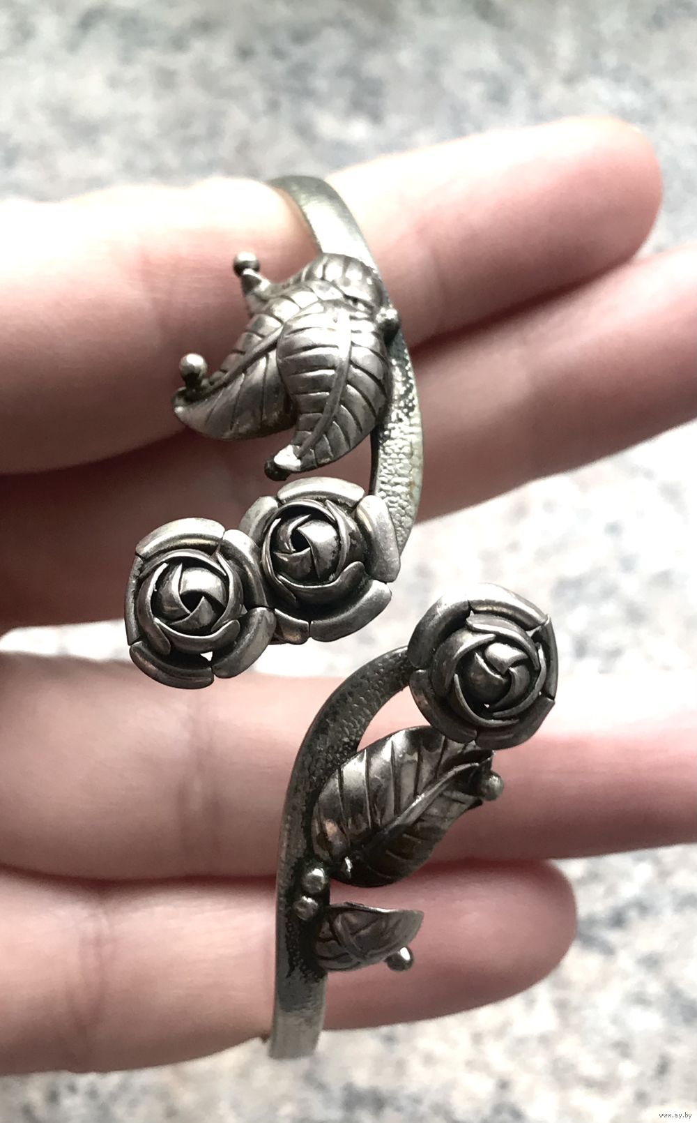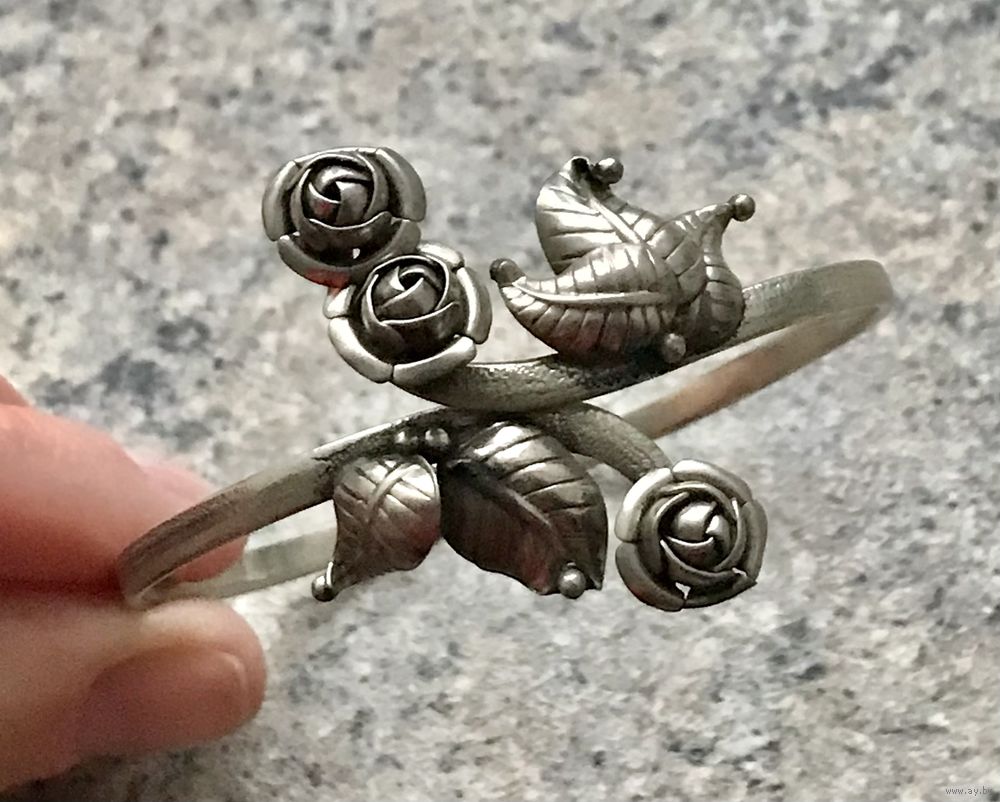 Винтажный браслет «Розы» из мельхиора, сделан на Литовском предприятии художественных изделий «Ула» в 80-е гг., размер регулируется. Лучше подойдёт на широкое запястье. Состояние хорошее.