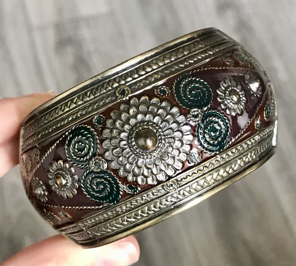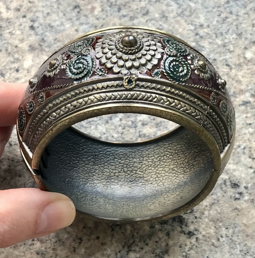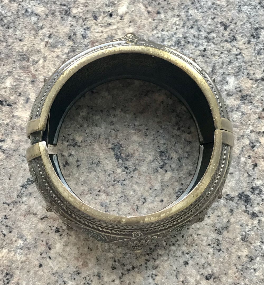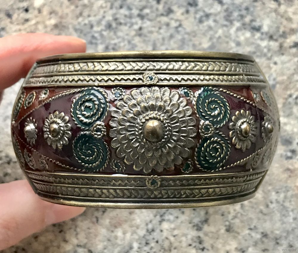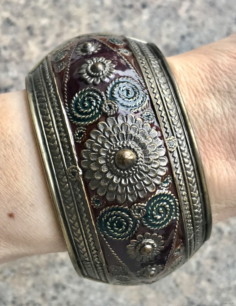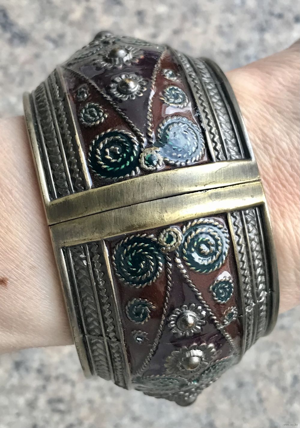 Крупный браслет в этническом стиле. Высота 4см., вн. диаметр 5,7см., разъемный. Тяжёленький. Состояние хорошее.