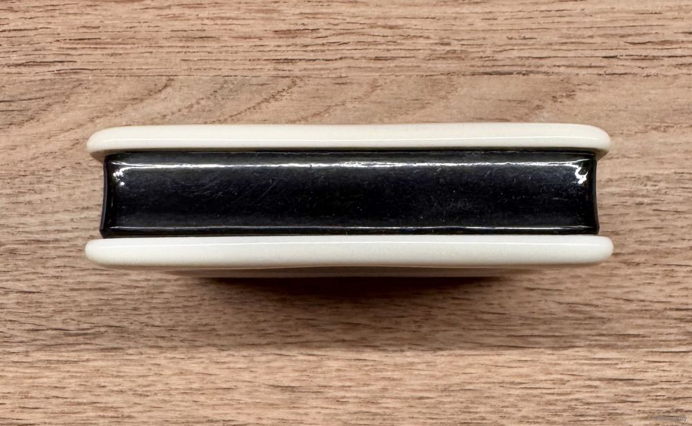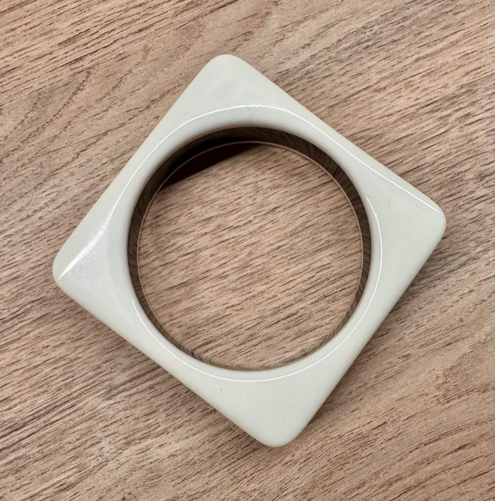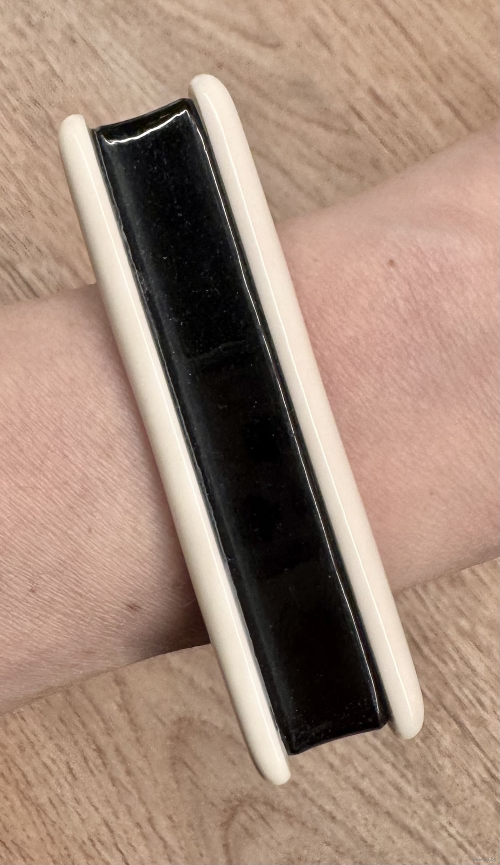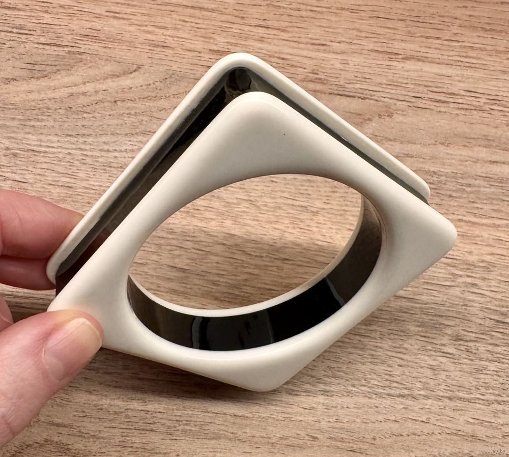 Браслет из черного и белого пластика. Высота 2см., вн.диаметр 6,5см. Имеются незначительные следы ношения.