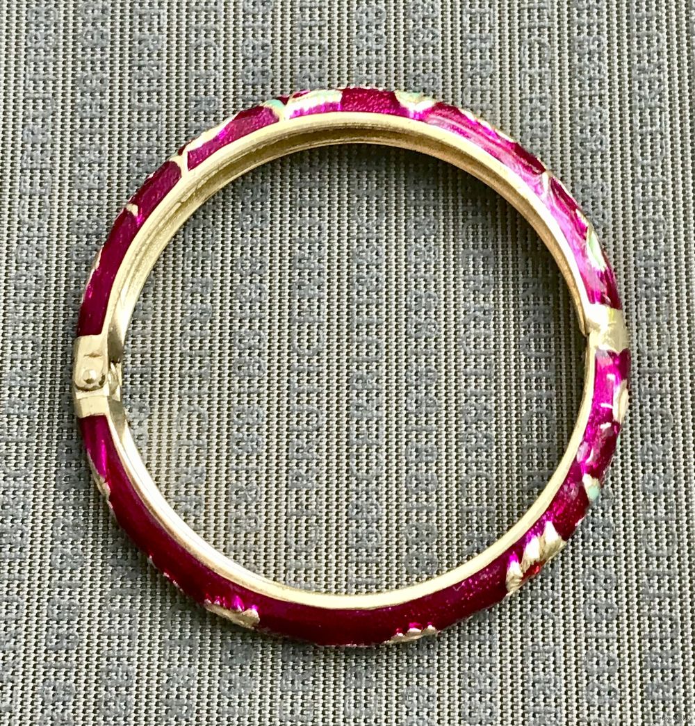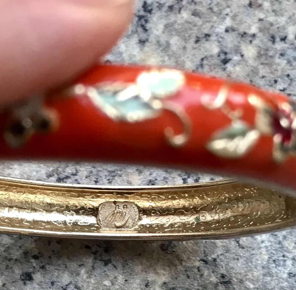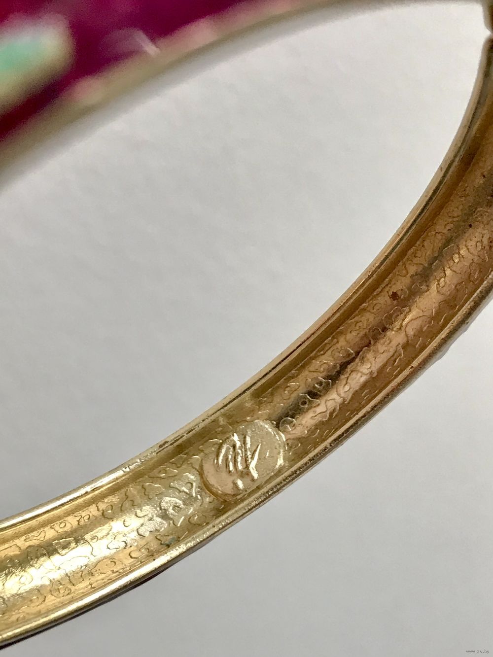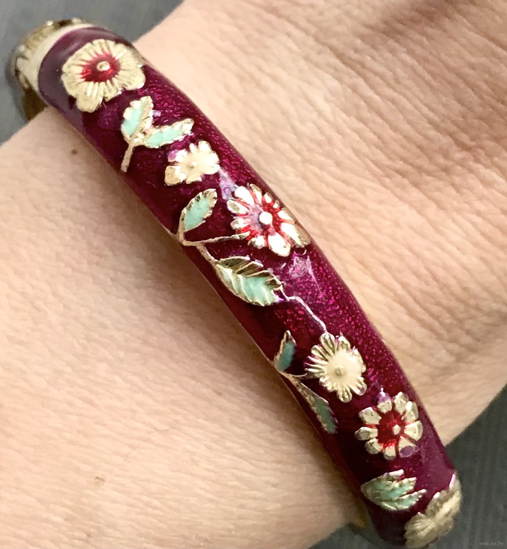 Винтажные браслеты - clamper от Jiu Long Xing. Выполнены из металла золотого тона. Декорированы цветной эмалью. Высота каждого браслета 0,9см., вн. диаметр 6см. Маркированы. Состояние хорошее.