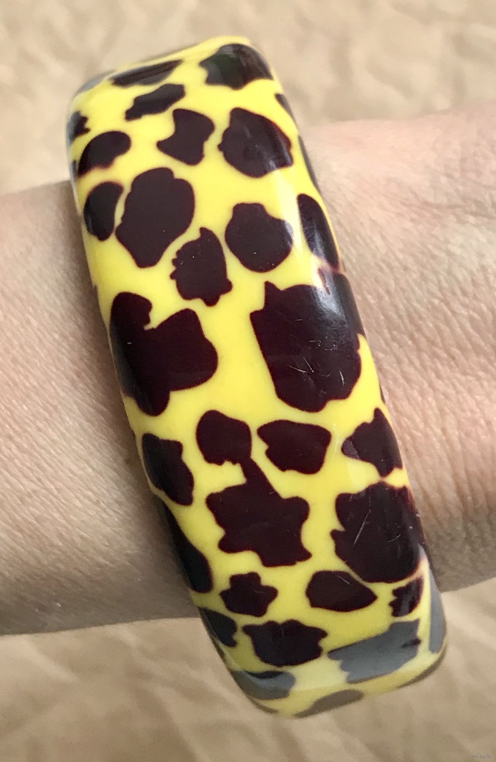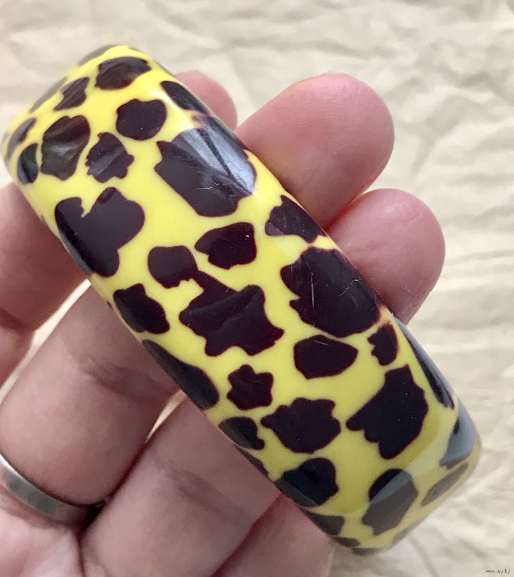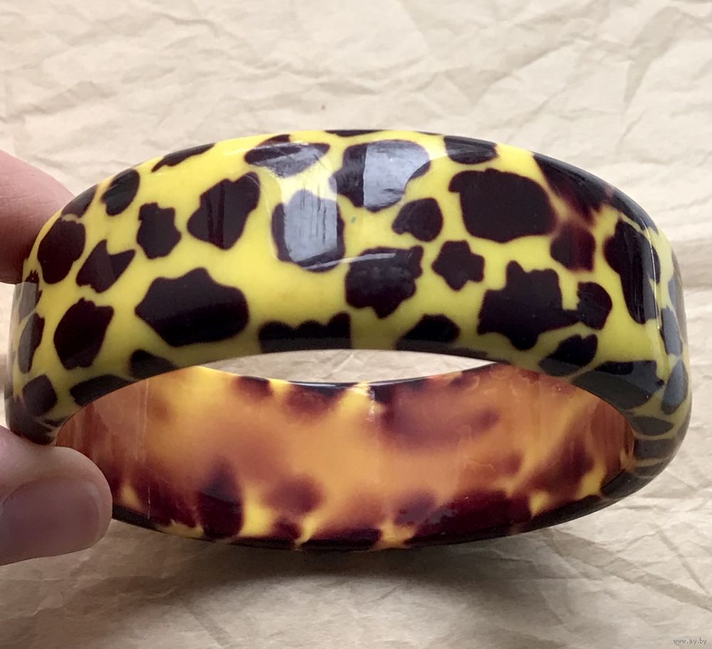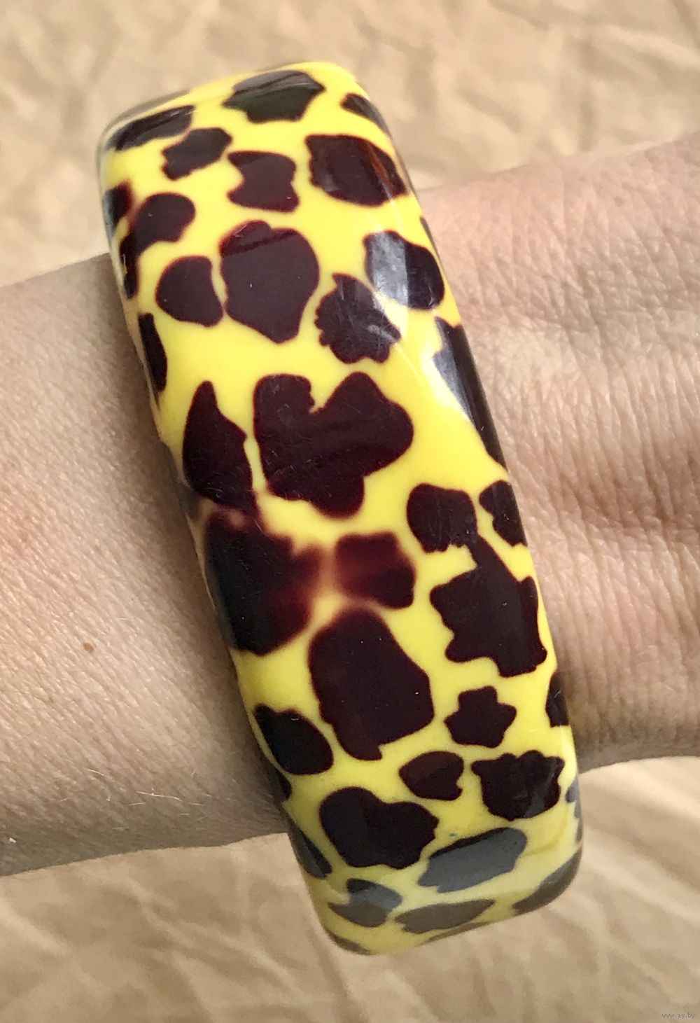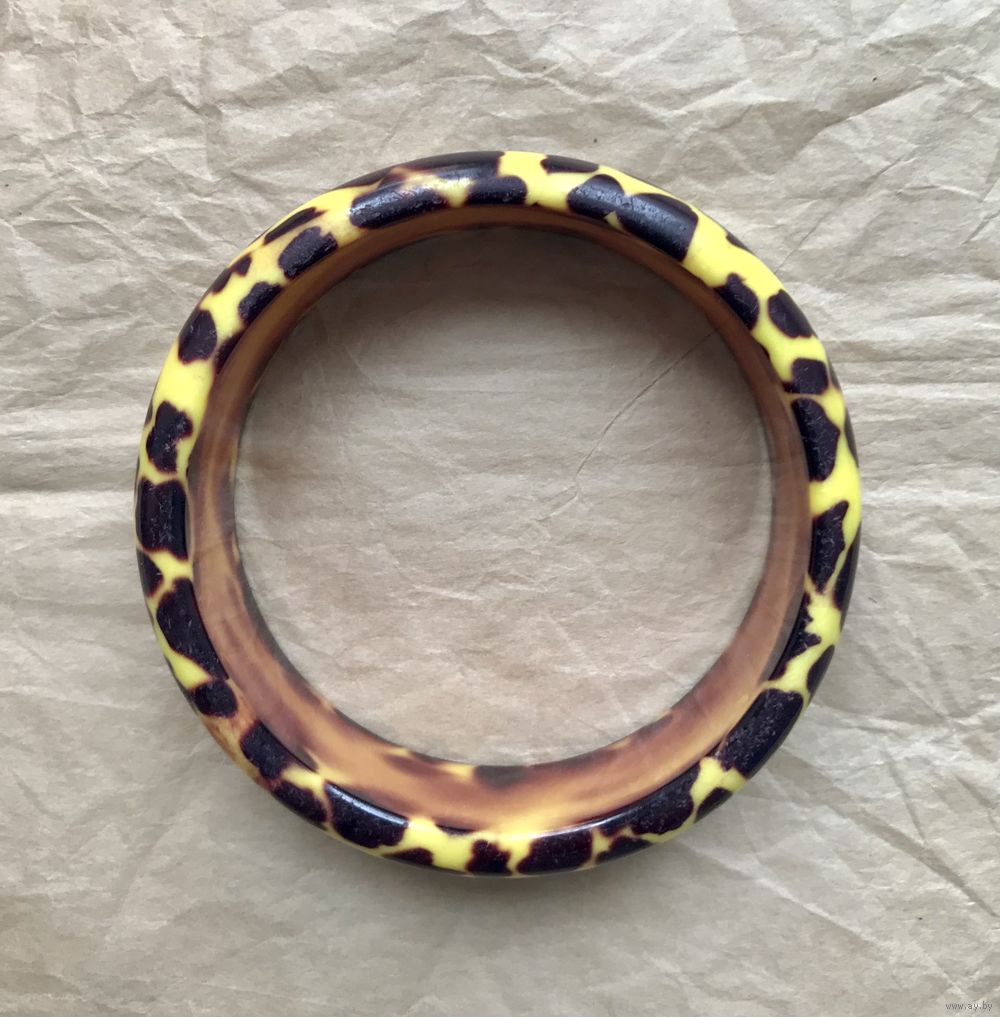 Браслет из плотного пластика. Имеются незначительные следы ношения. Высота браслета 2,3см., вн.диаметр 6,5см.