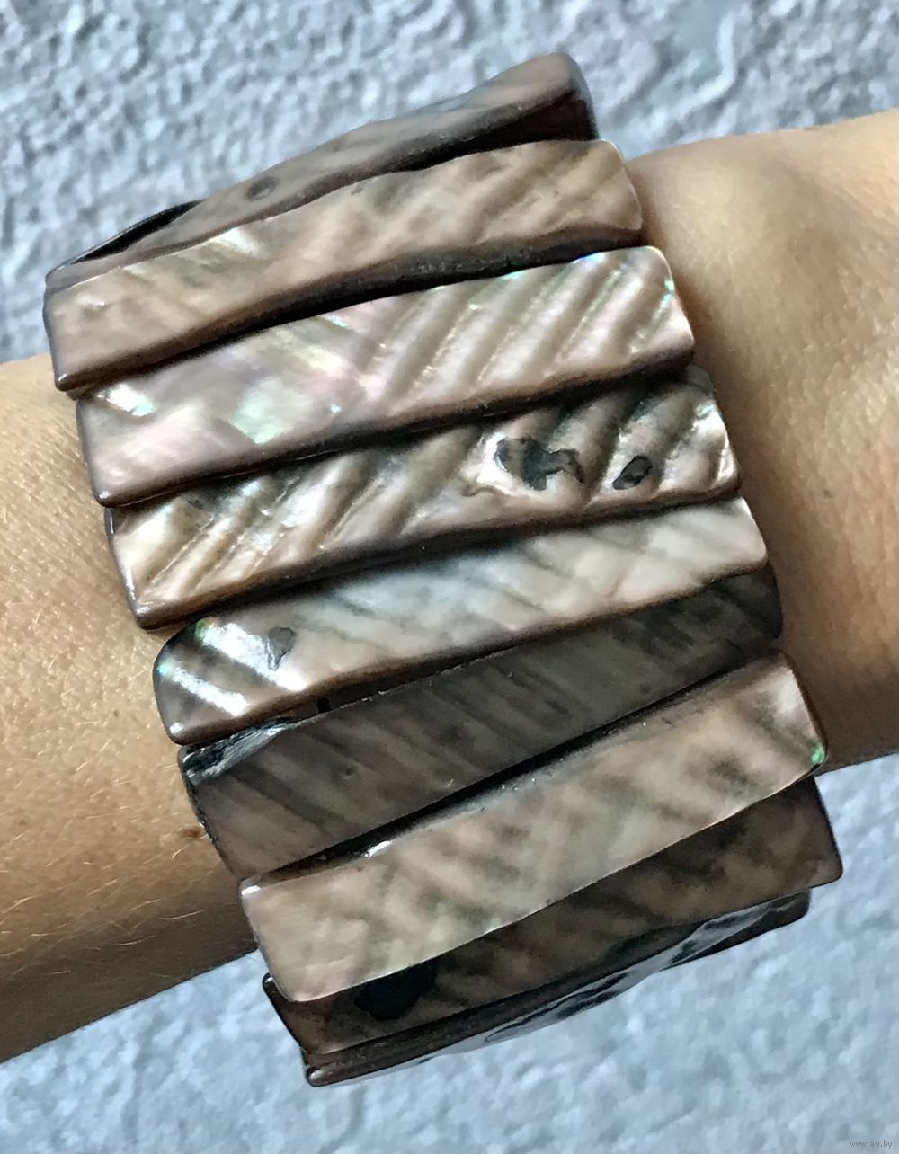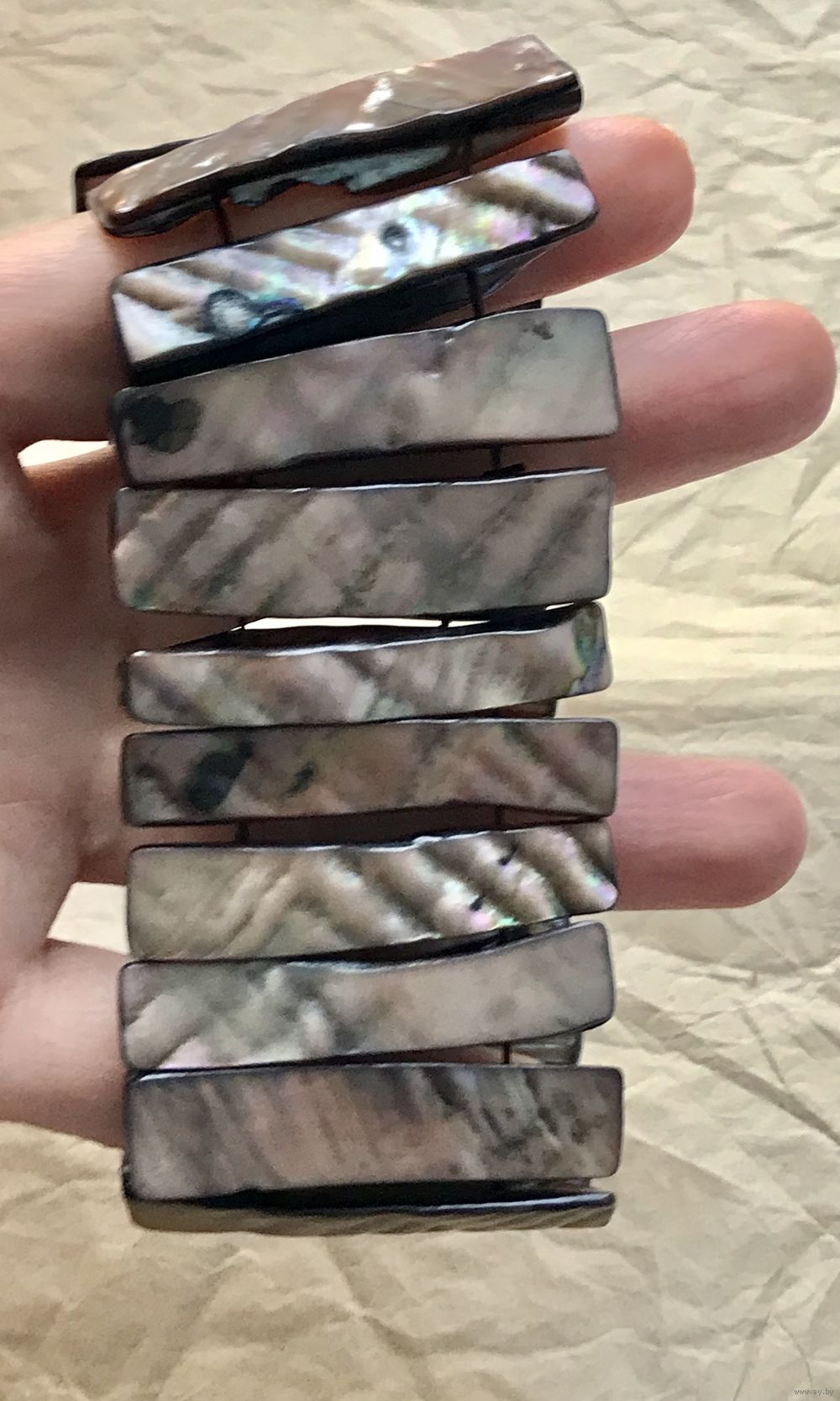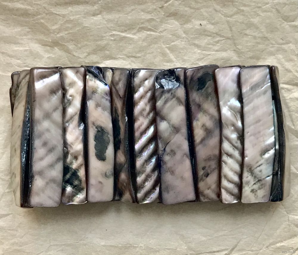 Крупный винтажный браслет из пластин перламутра. Высота браслета 4,4см., на резинке. Состояние хорошее.
