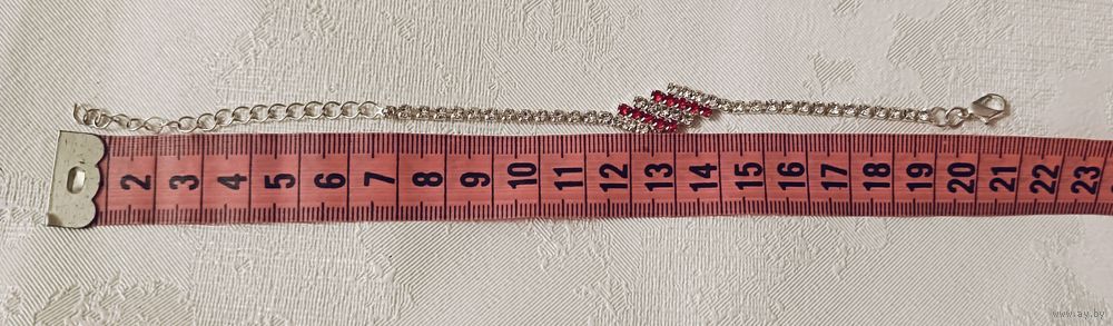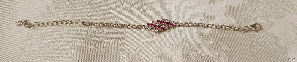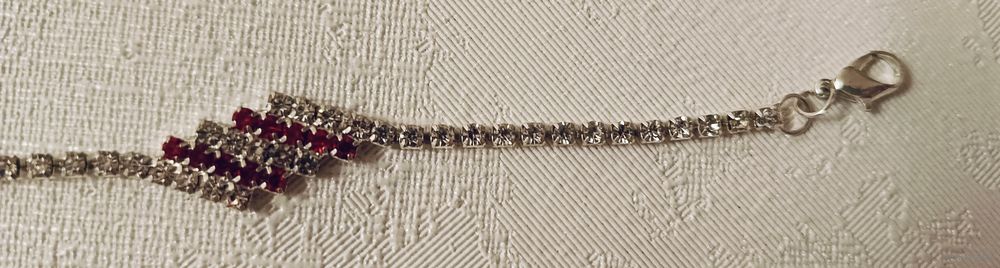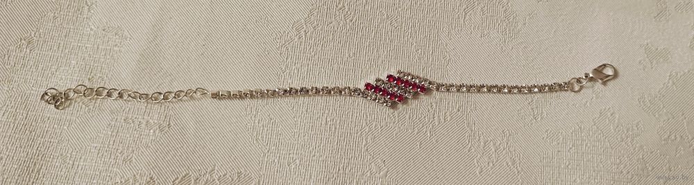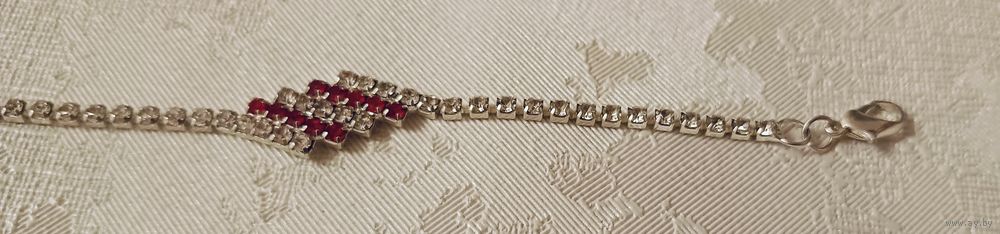 Браслет-цепочка из страз с красными и прозрачными камнями.