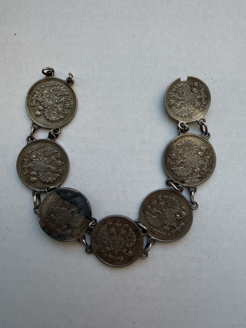 Браслет из царских монет номиналом 10 копеек 1912-1915 гг. Домашний сохран. Поломана застежка.