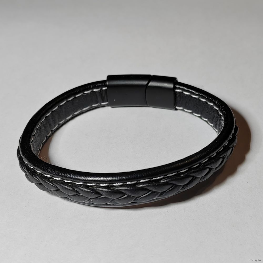 Браслет кожаный, плетёный "Стиль".