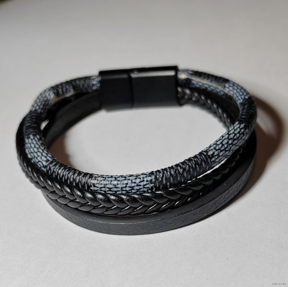 Браслет кожаный, плетёный "Змеиная кожа".