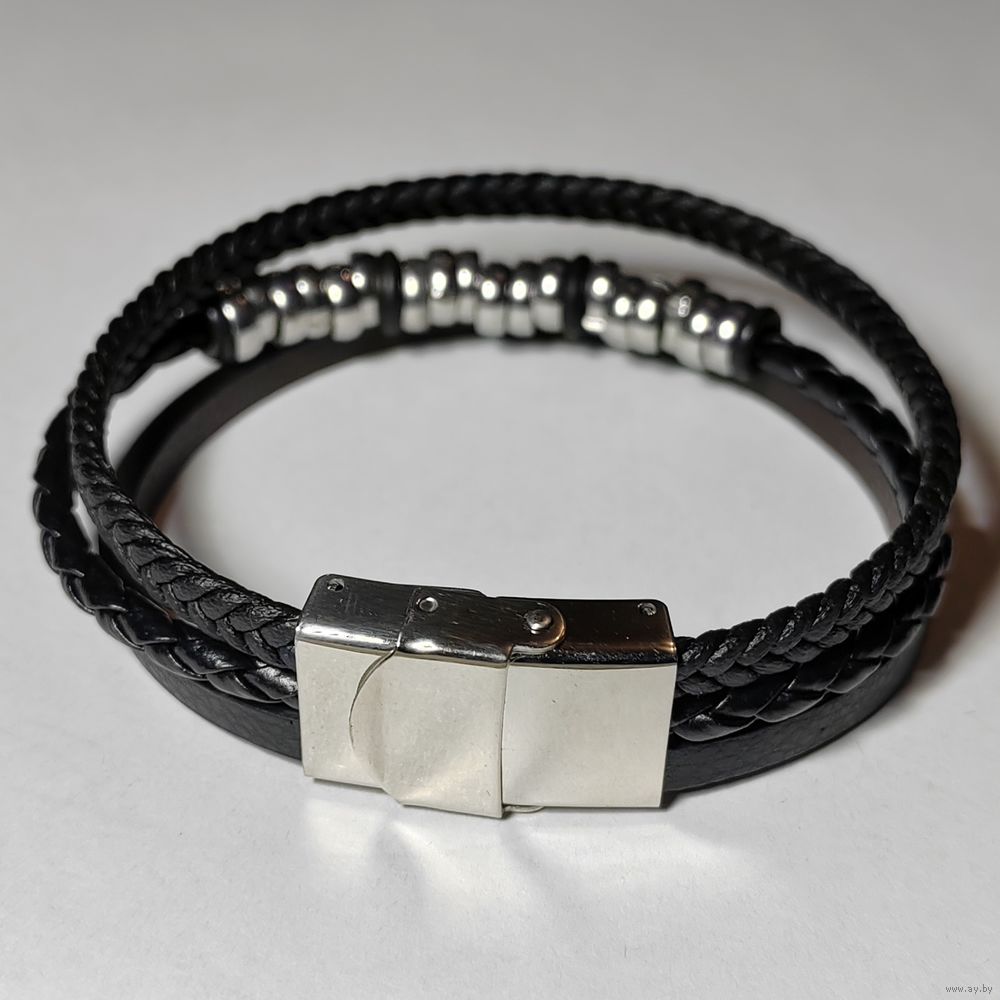 Браслет кожаный со стальной подвеской.