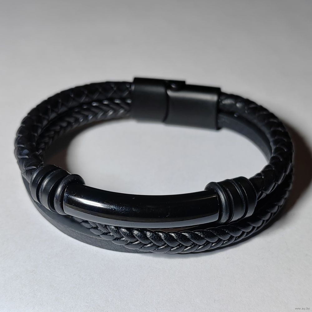 Браслет кожаный "Стальная воля" (Black version).