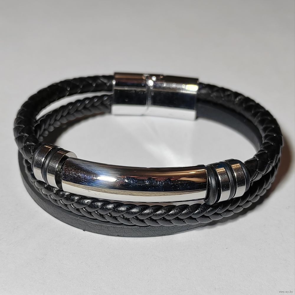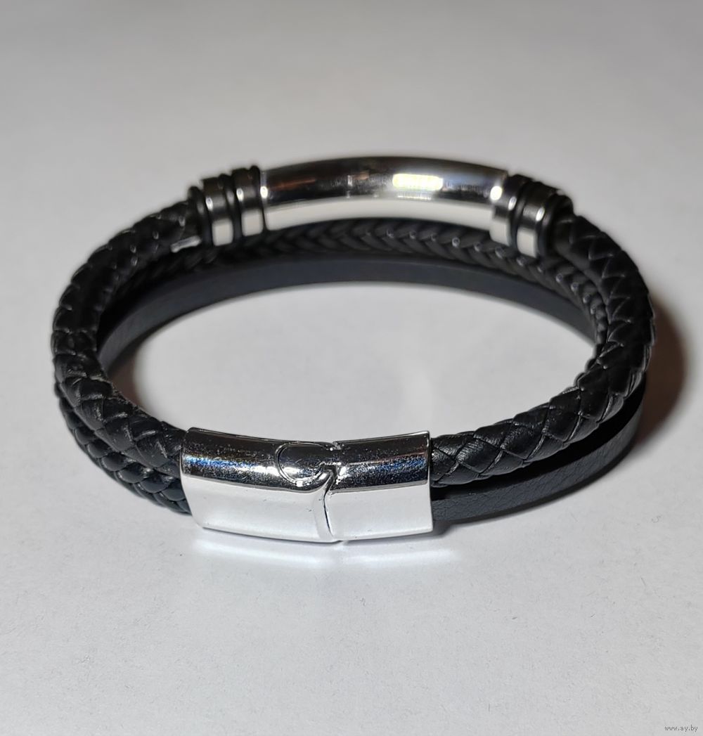Браслет кожаный "Стальная воля" (Silver version).
