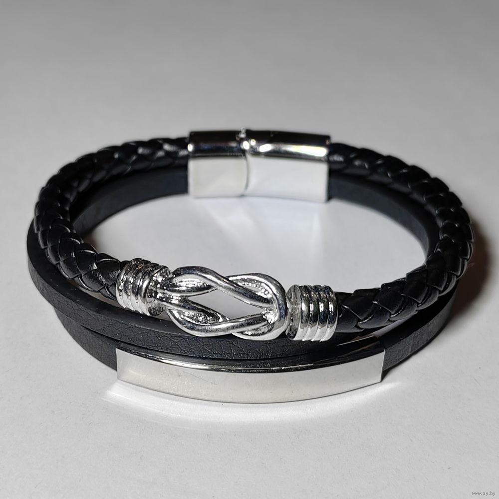 Браслет кожаный "Вязь" (с элементом для гравировки).