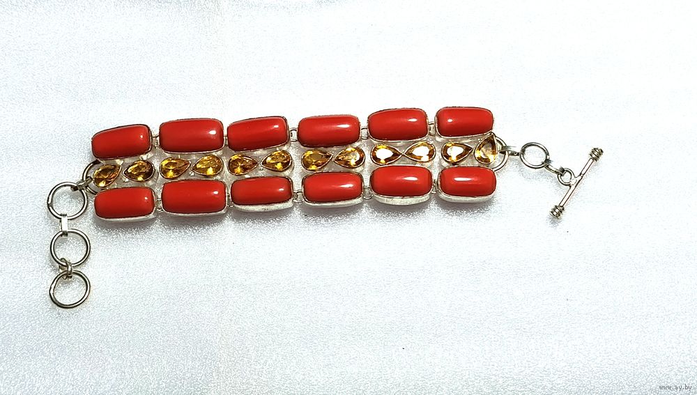 Итальянский коралл с топазами в серебре 925. Длина - 12 см без застёжек. Звоните. Виктор. Могу предложить коралловые кольца и серьги.