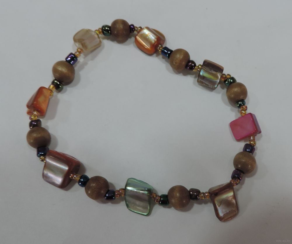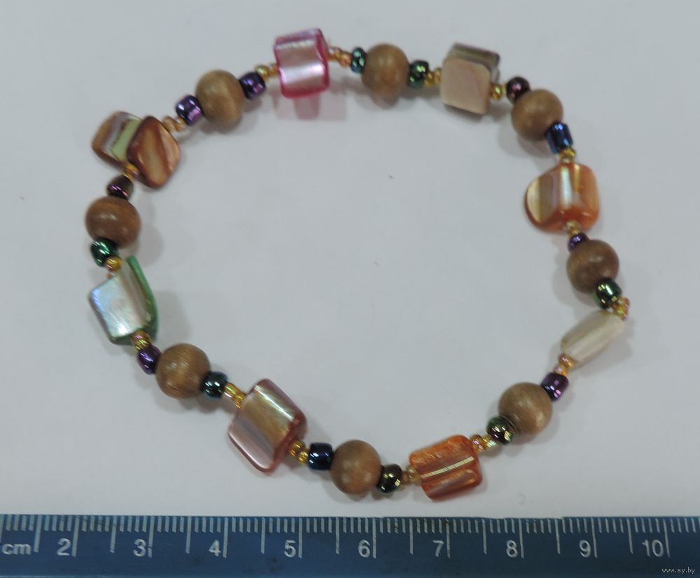 Браслет. Натуральный перламутр и др. Материалы. Длина 21 см. На резинке.