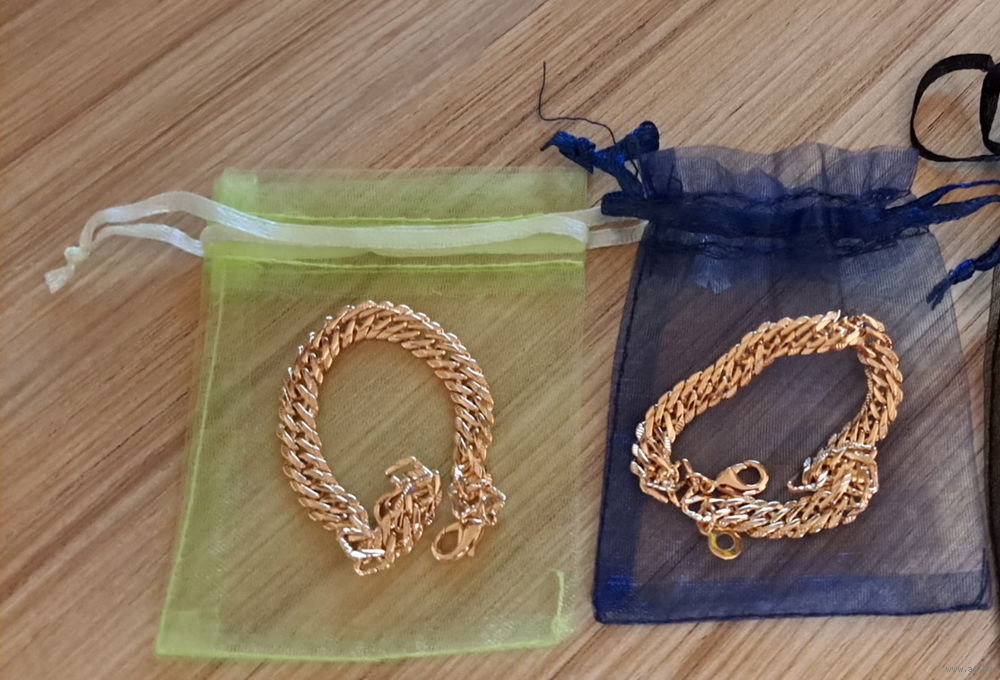 Браслет под золото на руку (бижутерия), новый, длина-16см (в зеленом мешочке), 19-20см (в синем мешочке), ширина-6мм, замок-карабин, изготовлен из медицинского сплава, который не вызывает аллергии и не тускнеет со временем, это роскошный браслет, который неотличим от настоящего золота.