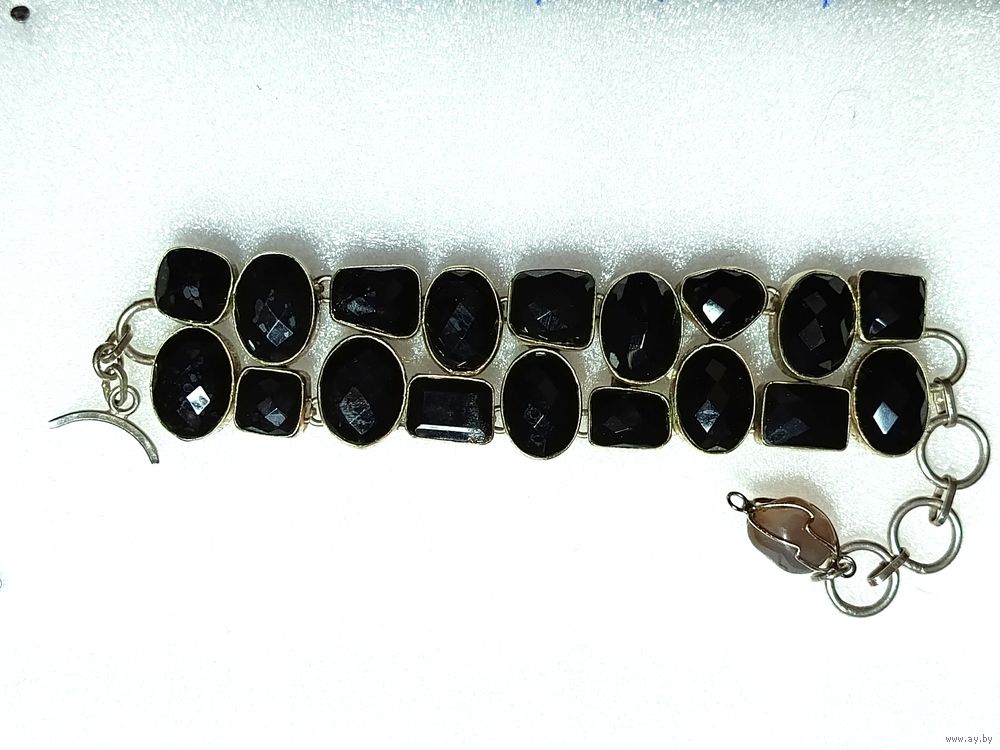 Потрясающий черный оникс 925 Серебряный ювелирных изделий ручной работы браслет 74 гр. Длина - 12,5 см без застёжки. Могу предложить такие кольцо и серьги.