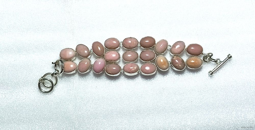 Браслет розовый опал в серебре 925. Длина 12,5 см. Цвет в живую более яркий. Куплен за 37 долл. Могу предложить такие кольцо и серьги.