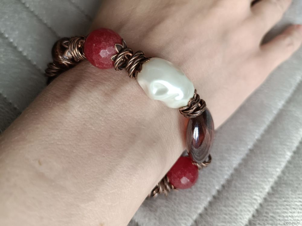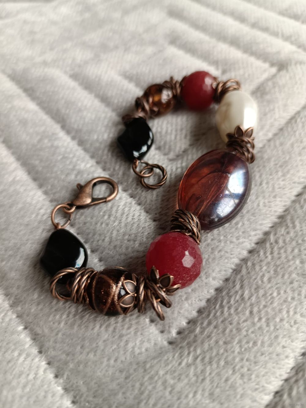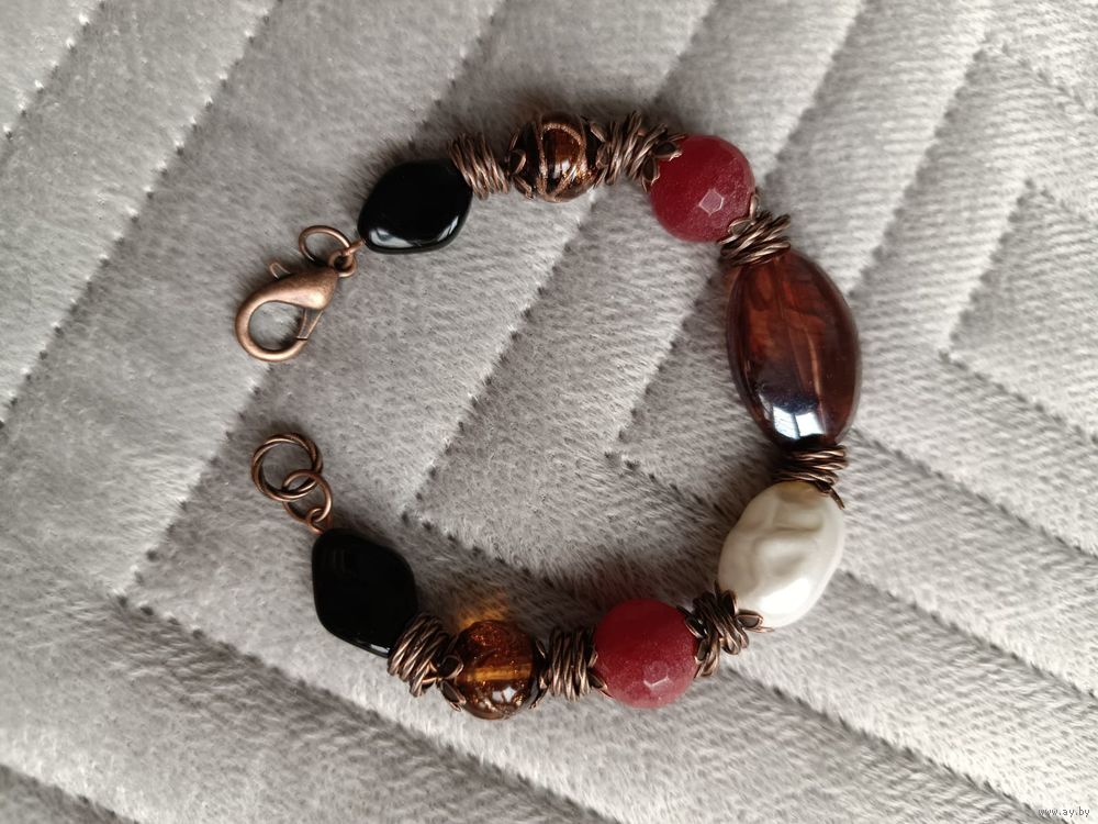 Браслет выполнен из агата, чешского стекла и французского полимера. Длина 22 см