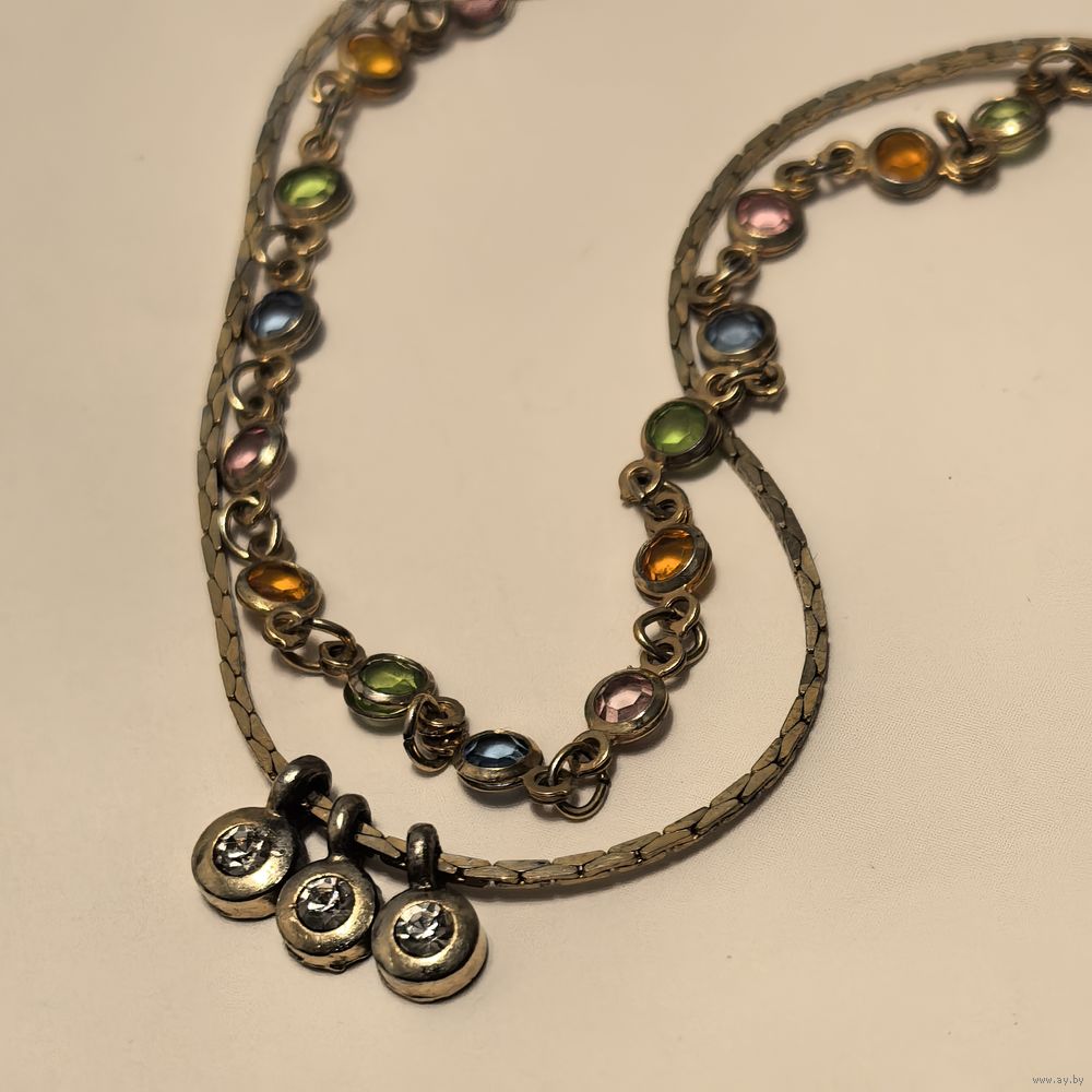 Изящный браслет с кристаллами безель. Двойной.