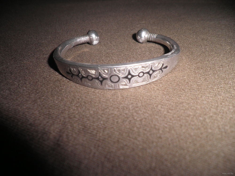 Браслет без клейм.Прошёл проверку в ювелирной мастерской.Привезён в СССР в конце 80-х,врачами которые работали в Западной Африке.Диаметр 7 см.х 6 см.(внешний)