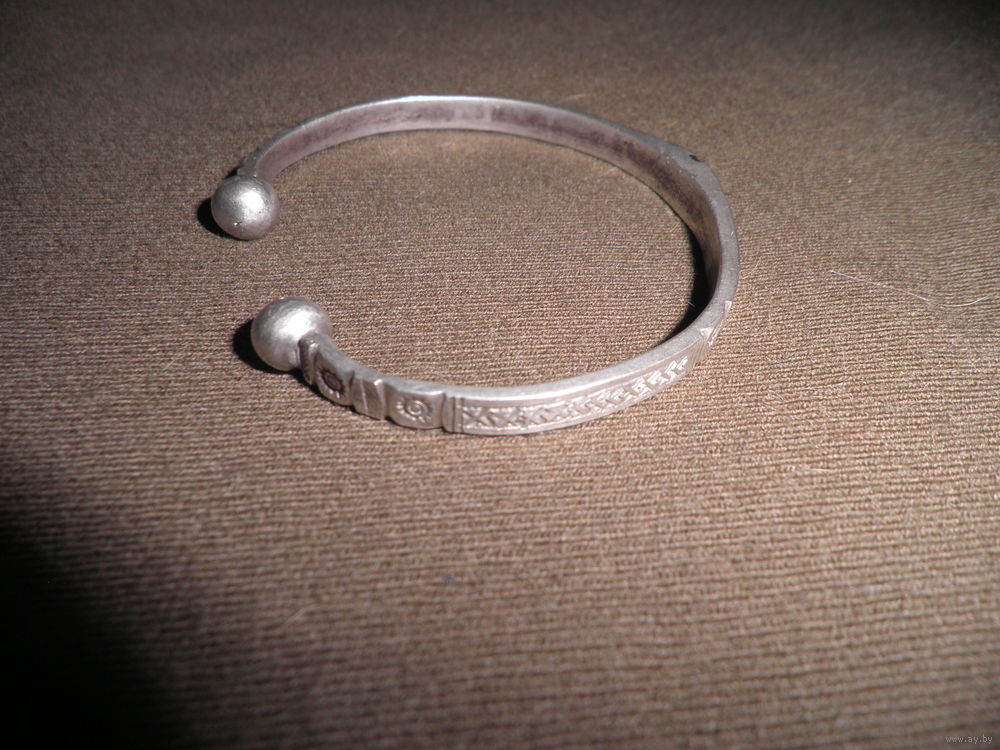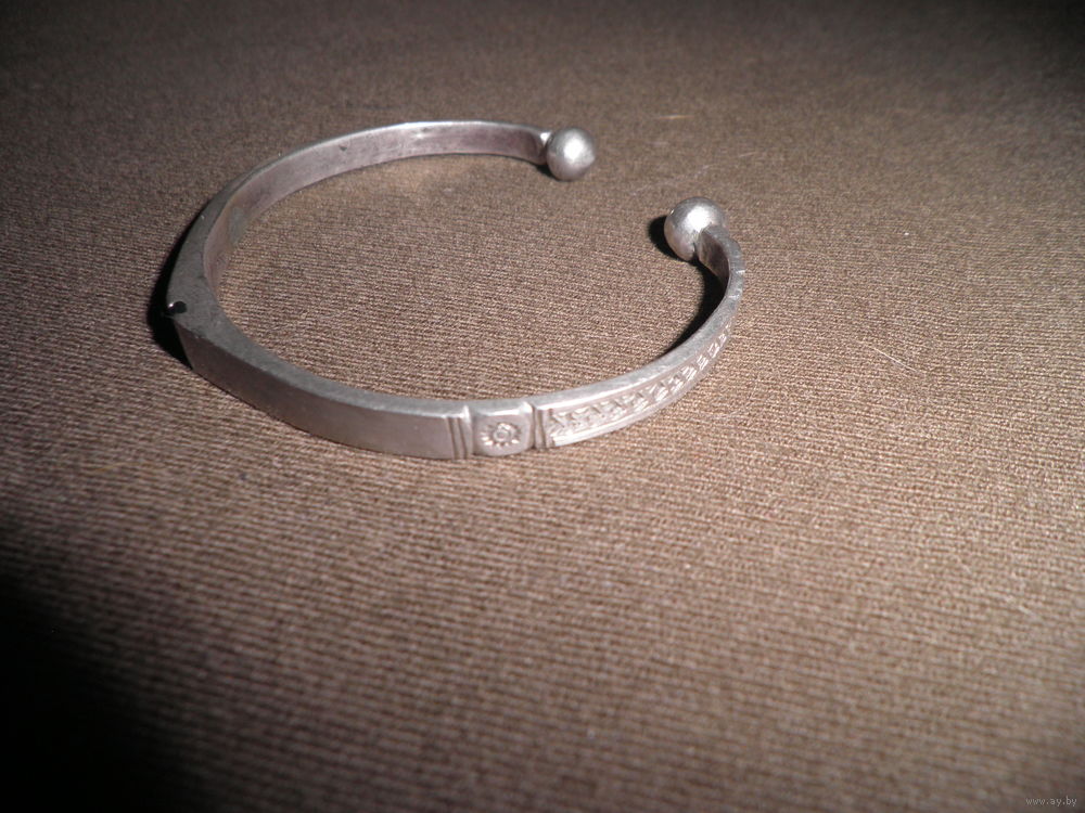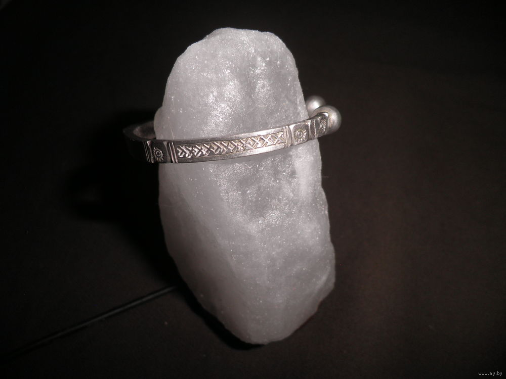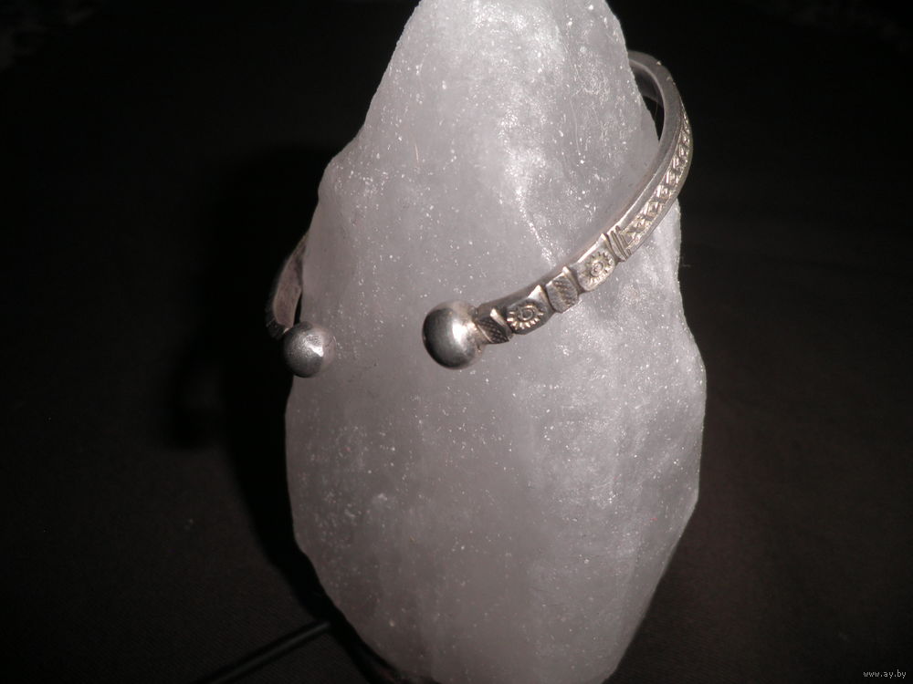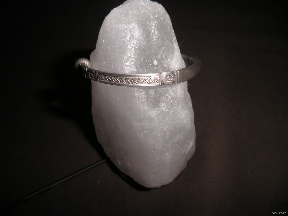 Браслет без клейм.Прошёл проверку в ювелирной мастерской.Привезён в СССР в конце 80-х,врачами которые работали в Западной Африке.Диаметр 6,5 см.х 6,5 см.(внешний)