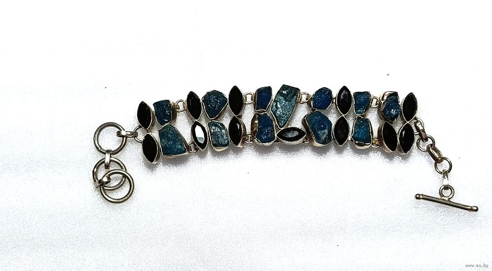 Браслет синий апатит и чёрный оникс, серебро 925. Длина - 11.5 см без застёжек.