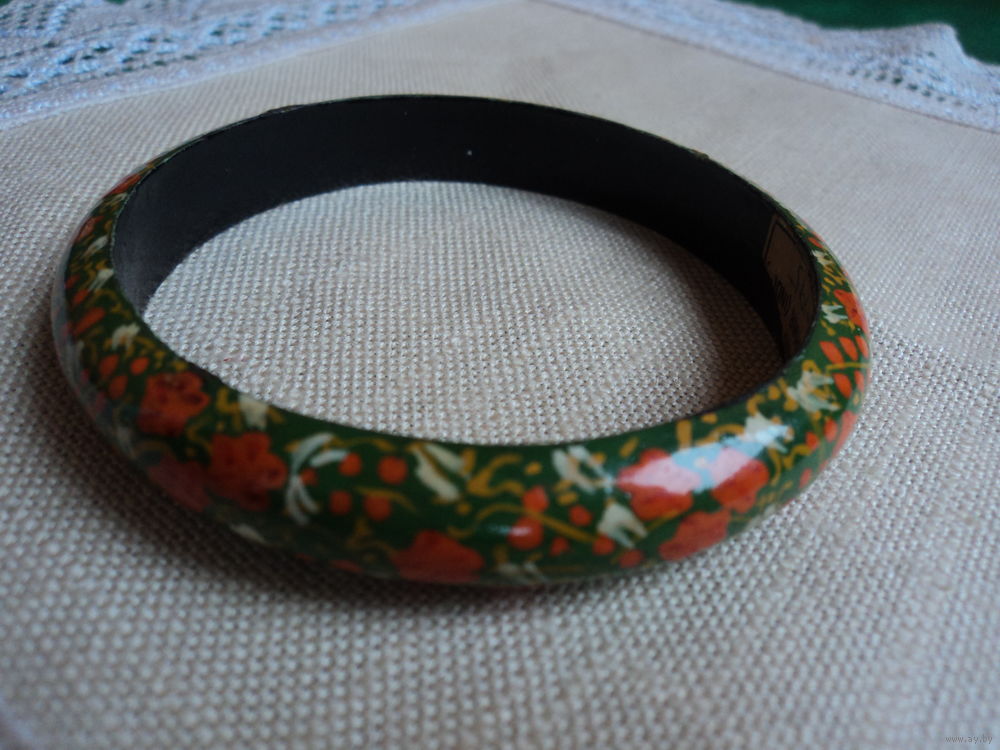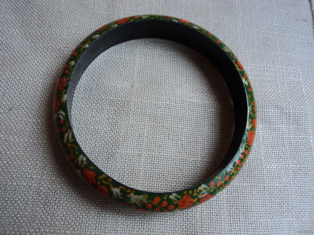 Очень красивый ,яркий и легкий винтажный индийский. браслет из дерева с рисунком ,выполненным в технике ручной росписи