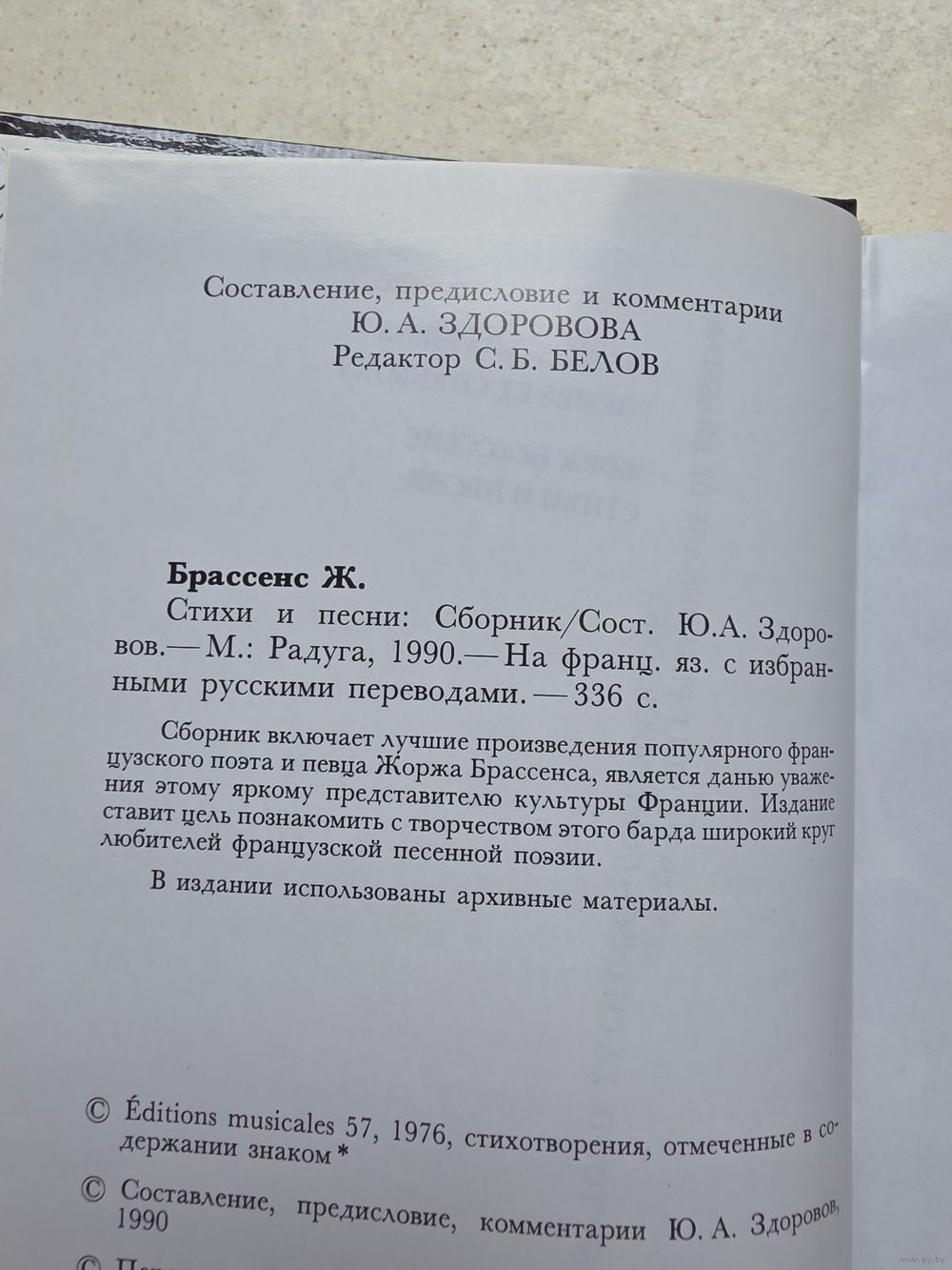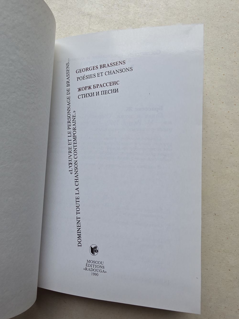 Брассенс Жорж. Стихи и песни. На французском и русском языках М. Радуга 1990г. 336 с. - IV