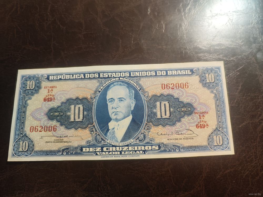 Бразилия 10 крузеиро образца 1961-1963 года AUNC p167b