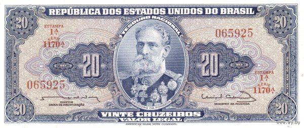 Бразилия 20 крузеиро образца 1961,1963 года UNC p