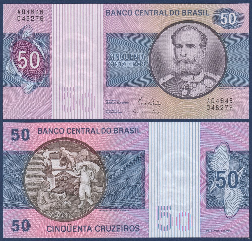 Бразилия, 50 крузейро 1970-1980 г., P-194c (A, первый президент Деодору да Фонсека, картина Кандиду Портинари), UNC