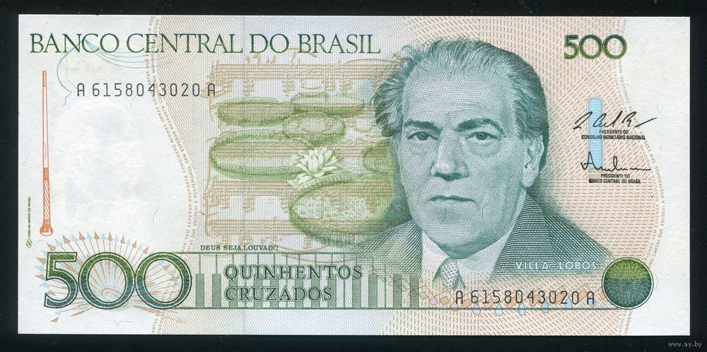 Бразилия 500 крузадо 1987 г. P212c. Серия 6158. UNC
