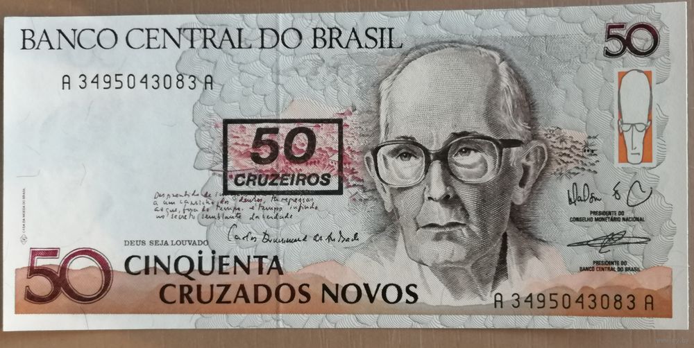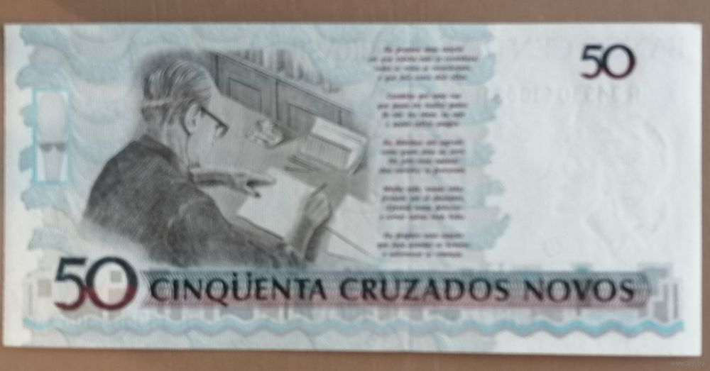 50 новых крузадо — ND(1989). Sign.26 (Maílson F. da Nóbrega / Elmo Camões). Литеры АA .. Series 0001-3340