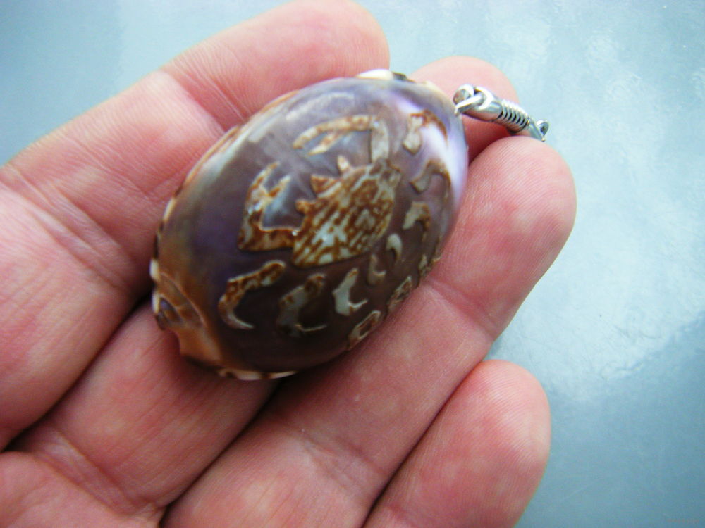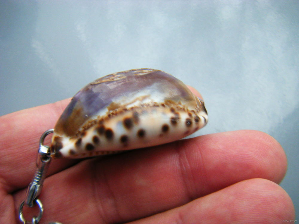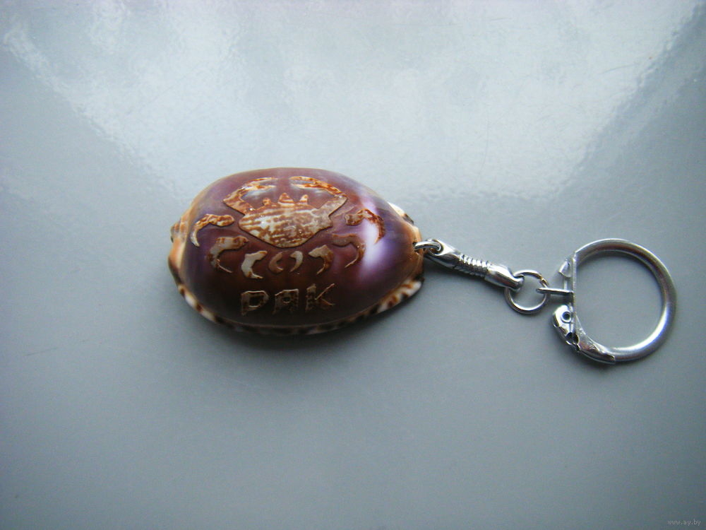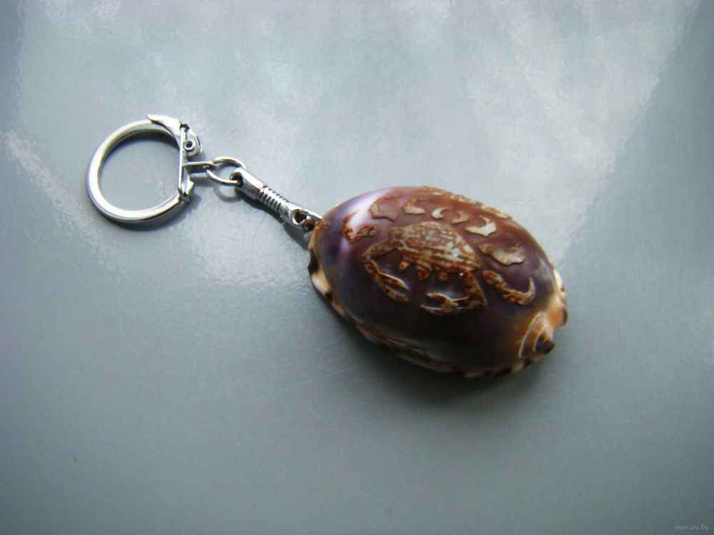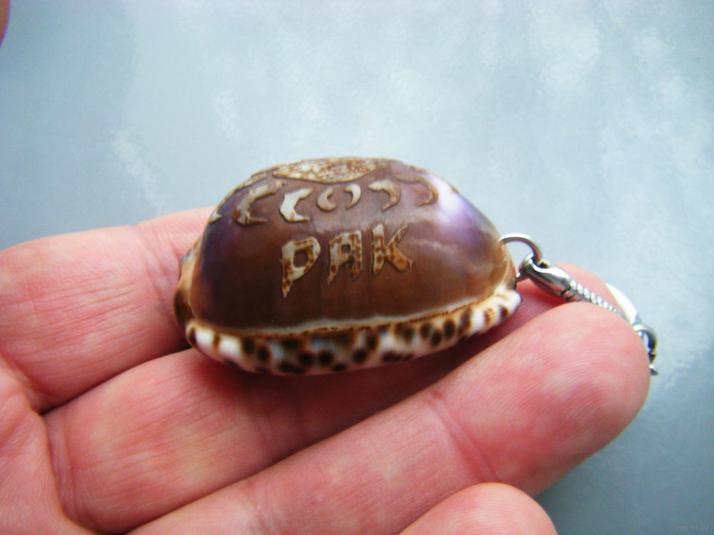 Брелок РАК. Резьба на натуральной ракушке каури.