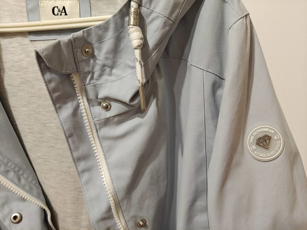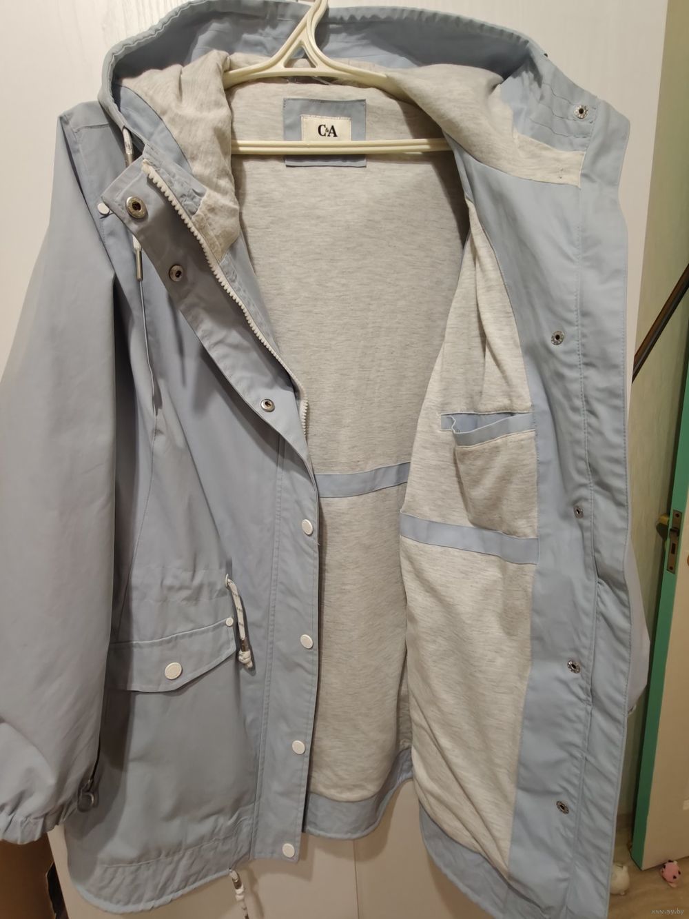 Продаётся куртка женская с капюшоном европейского бренда C&A: размер 54, рост 170. Состояние изделия отличное. Цвет бледно-голубой.
