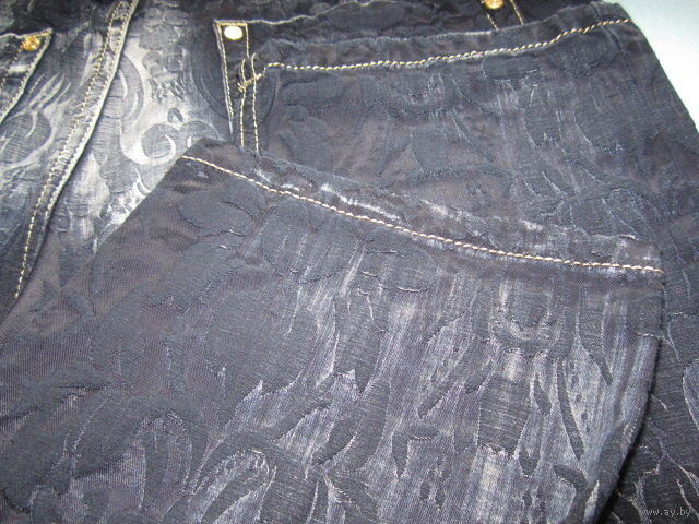 Супер джинсики из ограниченной коллекции! Ткань плотная, очень интересного качества - с шелковистой поверхностью, тисненая (таких больше нигде не видела!), немного тянется. Золотистая фурнитура, по швам отделка золотистой нитью.
