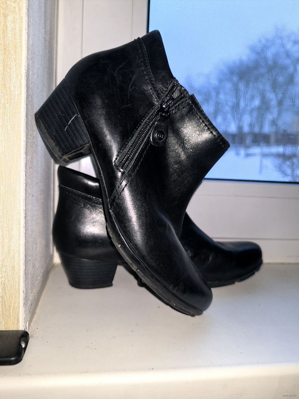 Б/у немного, состояние идеальное и внутри, и снаружи. На каблучке есть царапина, но в реальности она как волосинка и практически не заметна (кремом не обрабатывались, на фото реальное состояние ботинок).