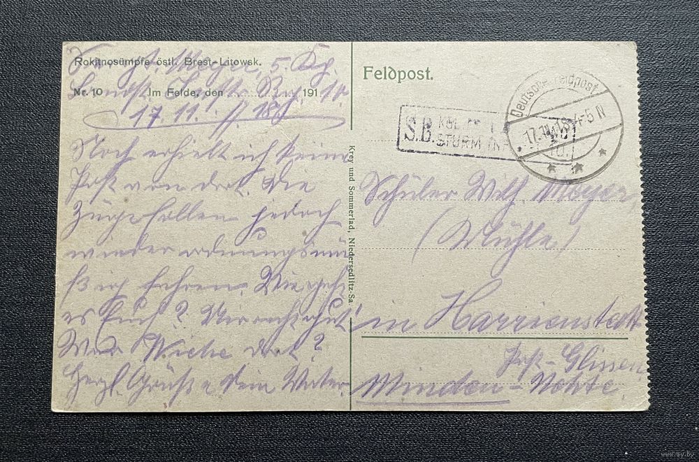 Арыгінальная нямецкая паштоўка часоў 1-й Сусьветнай вайны.